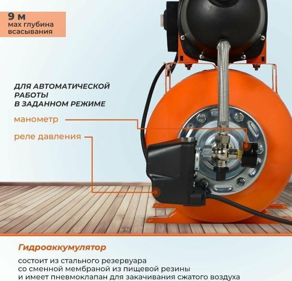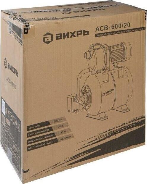 Напряжение питающей сети, В 220-230. Частота питающей сети, ГЦ 50. Мощность, Вт 600. Тип насоса Центробежный. Максимальная высота подъема воды, м 35. Максимальная производительность, л/мин 55. Диаметр входного и выходного отверстий, дюйм 1. Максимальная глубина всасывания, м 9. Материал корпуса насоса Пластик. Емкость гидроаккумулятора, л 20. Допустимая концентрация твердых частиц в перекачиваемой воде, г/м3-150. Гарантия 1 год. Вес, кг 10.7 кг. Габариты упаковки 0.45х0.505х0.28 м.
