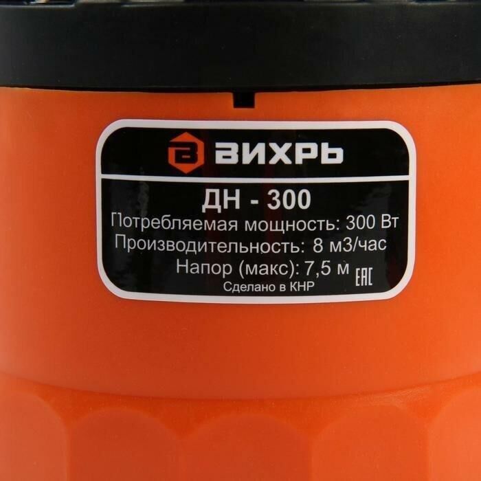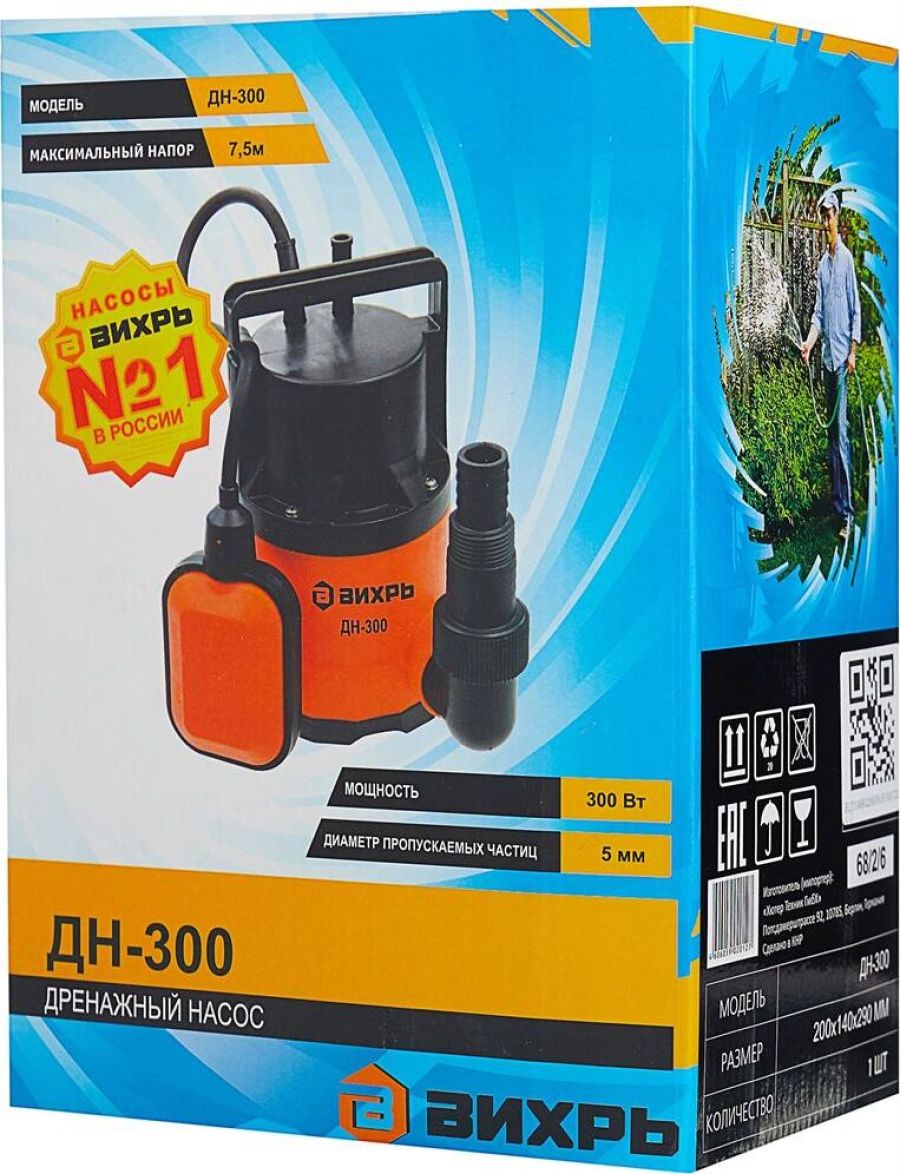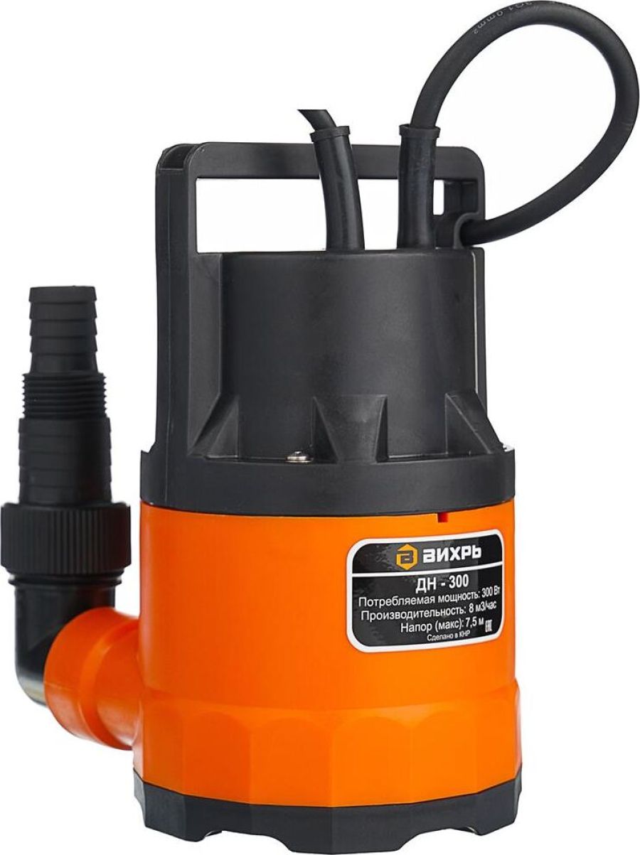 Высота подъема, м 8. Глубина погружения, м 8. Мощность, Вт 300. Производительность, л/мин 183. Трубное соединение, дюйм внутренняя G1 1/2. Тип дренажный для чистой воды. Вид погружной. Защита от сухого хода нет. Мах температура жидкости, °С 35. Соединитель в комплекте внешняя G1; елочка 1 1/4; елочка 1. Допустимая температура жидкости, °С от +1 до +35. Напряжение, В 220. Материал корпуса пластик. Допустимый диаметр твердых частиц, мм 5.