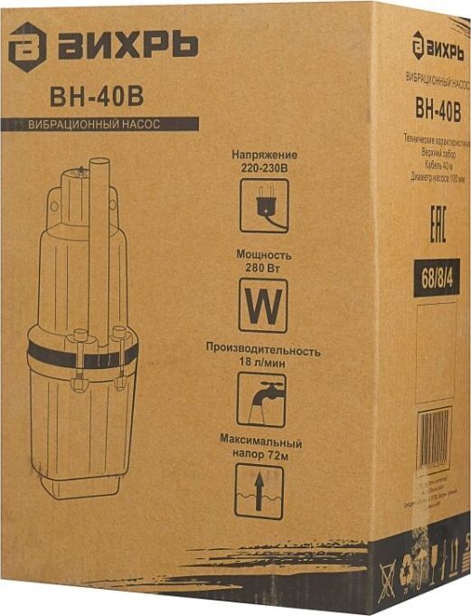 Вес нетто, кг 3,3. Высота подъема, м 72. Габариты без упаковки, мм 160x110x290. Глубина погружения, м 3. Забор воды нижний. Мощность, Вт 210. Производительность, л/мин 18. Трубное соединение, дюйм елочка 3/4. Тип колодезный. Диаметр насоса, мм 100. Длина кабеля, м 40. Вид погружной. Защита от сухого хода нет. Мах температура жидкости, °С 35. Min уровень воды, мм 600. Соединитель в комплекте нет. Для повышения давления нет. Допустимая температура жидкости, °С до +35. Класс защиты IPX8. Напряжение, В 220. Материал корпуса металл. Серия ВН. Конструкция вибрационный.