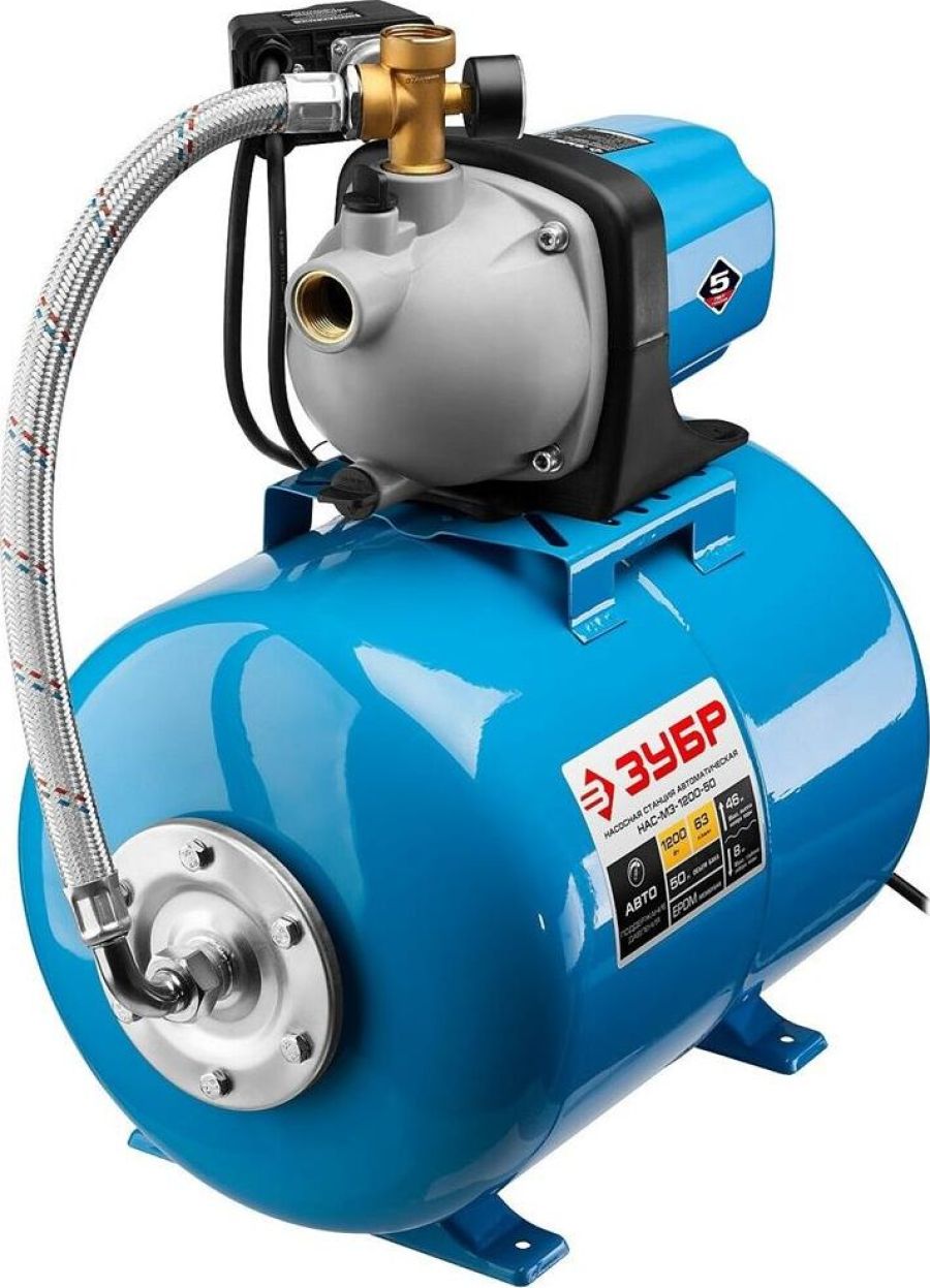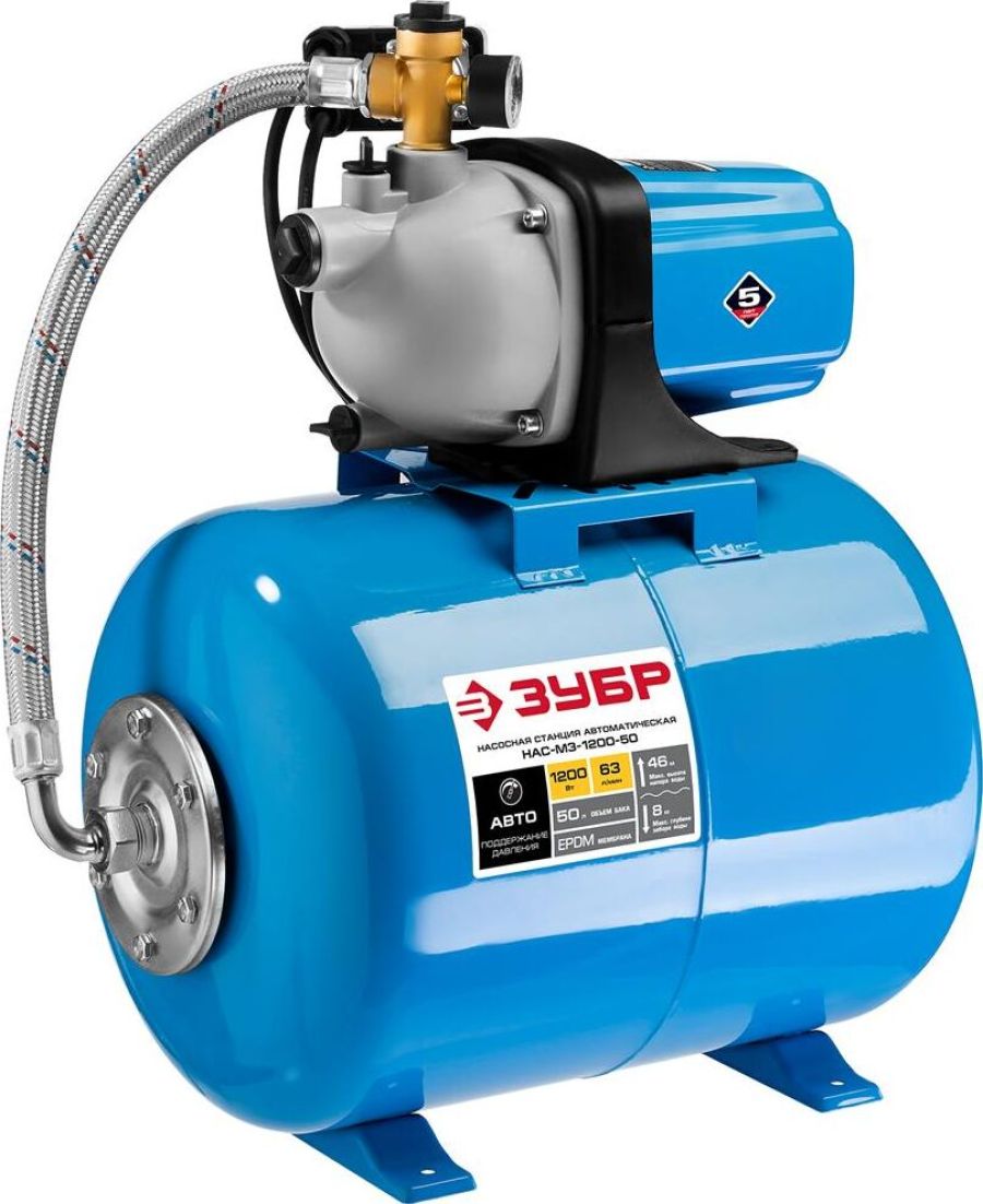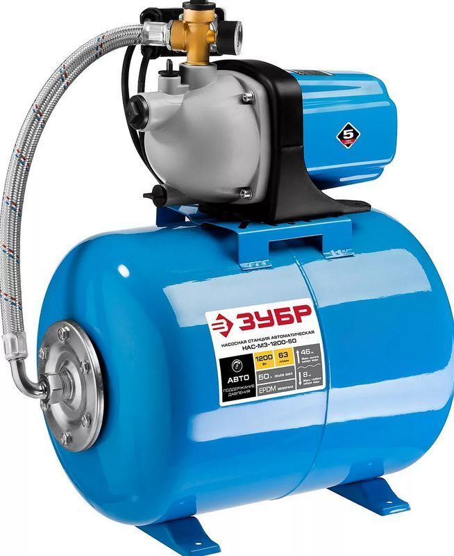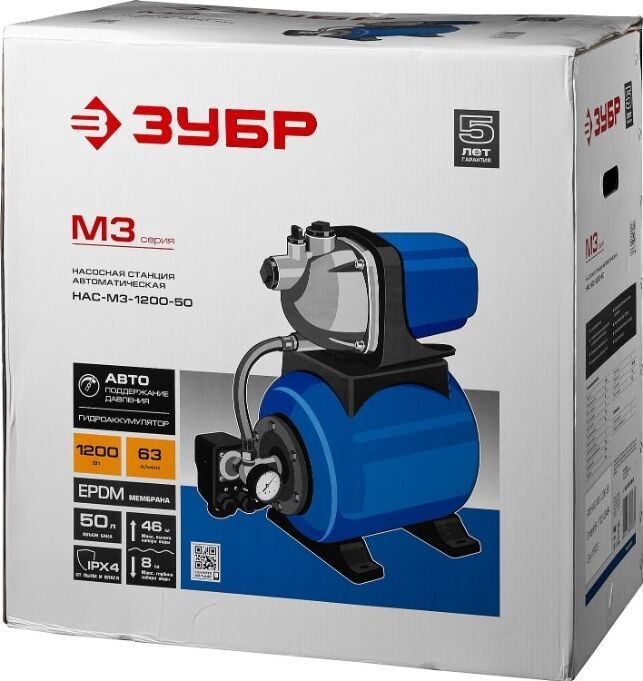 ЗУБР НАС-М3-1200-50 Станция насосная "МАСТЕР" М3 автоматическая Насосная станция ЗУБР МАСТЕР НАС-М3-1200-50 - агрегат для увеличения давления в сетях водопровода с низким давлением. Имеет пропускную способность 63 литра в минуту. Гидроаккумулятор (50 л) создаёт запас воды, сокращая количество включений и выключений системы, а термопредохранитель защищает от перегрева, исключая возможность поломки насоса. Мембрана гидроаккумулятора изготовлена из каучука EPDM, который не деформируется при низких температурах и выдерживает высокие нагрузки. Технические характеристики Зубр МАСТЕР НАС-М3-1200-50 Высота подъема, м 46 Мах температура жидкости, °С 35 Мощность, Вт 1200 Объем бака, л 50 Производительность, л/мин 63 Трубное соединение, дюйм внутренняя G1 Тип насосная станция Вид поверхностный Защита от сухого хода нет Ротор сухой Для повышения давления есть Эжектор нет Вес, кг 16,2 Габариты, мм 590х350х650 Давление, атм 1.5-3
