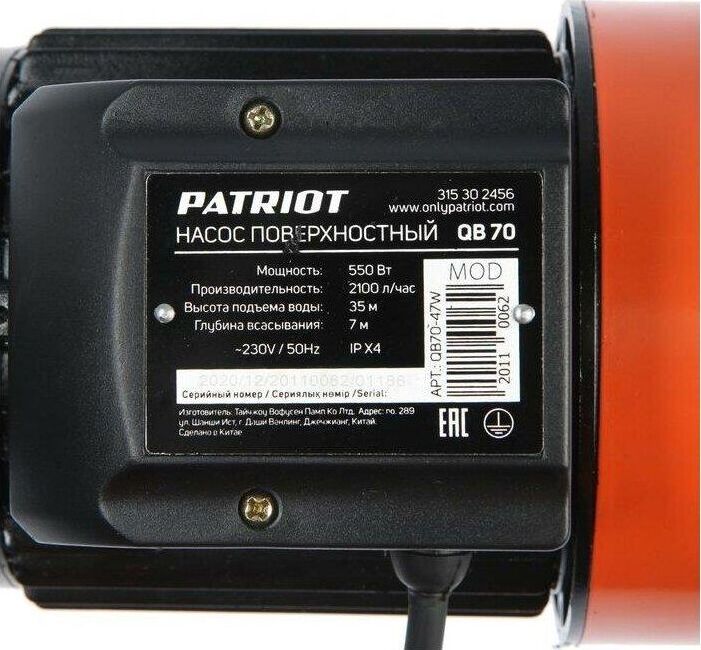 Макс. глубина всасывания, м 7, Производительность, л/час 2100, Длина кабеля, м 1, Диаметр выходного отверстия, дюйм 1, Мощность двигателя, кВт 0,55, Напряжение, В 220, Диаметр пропускаемых частиц, мм 0, Высота подъема, м 35.
