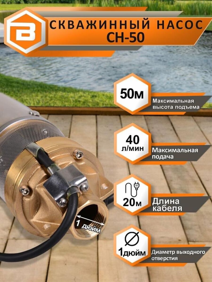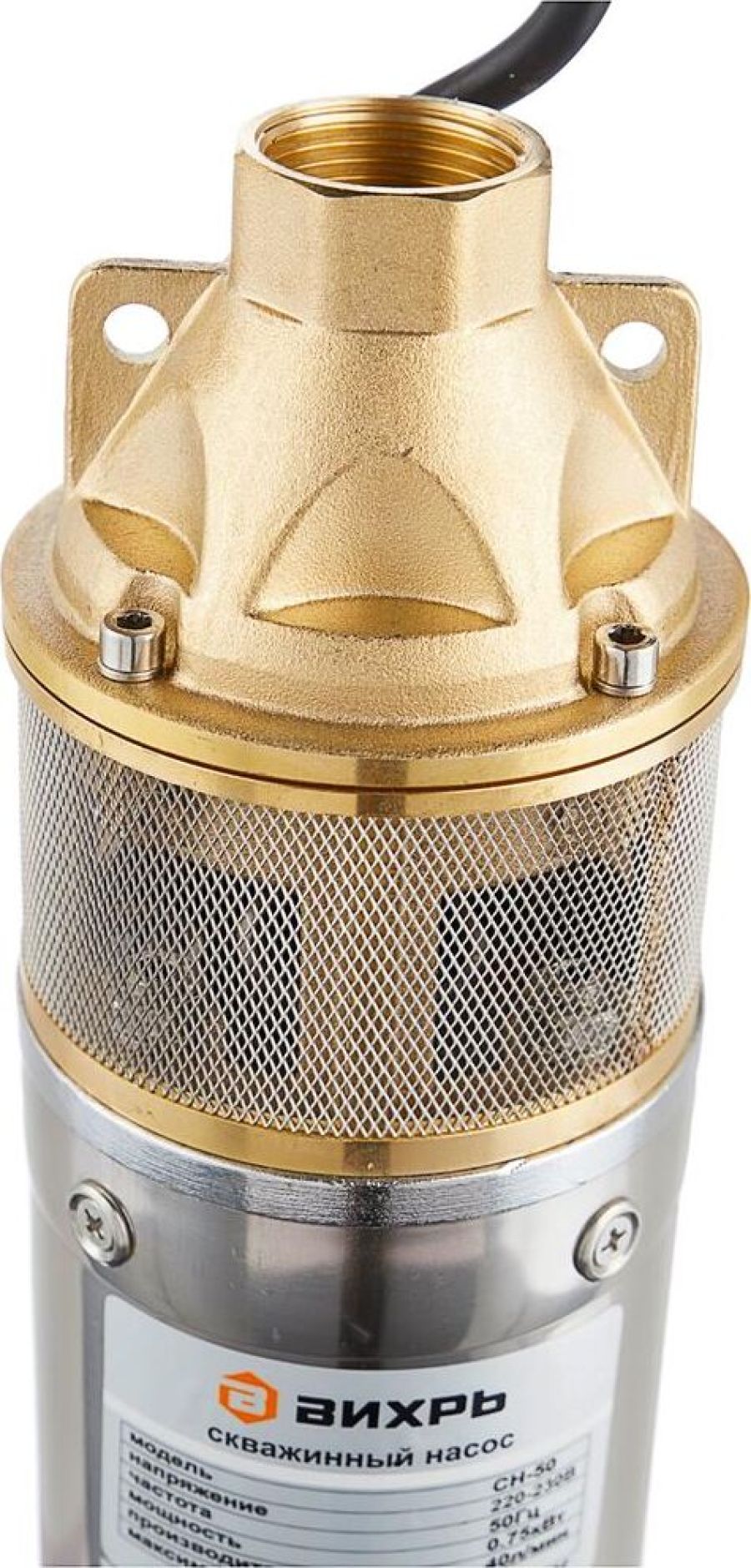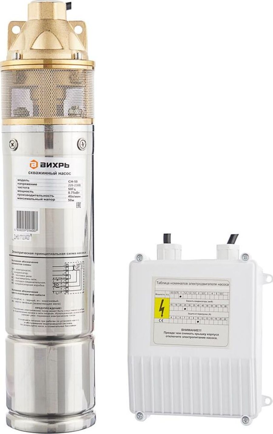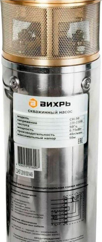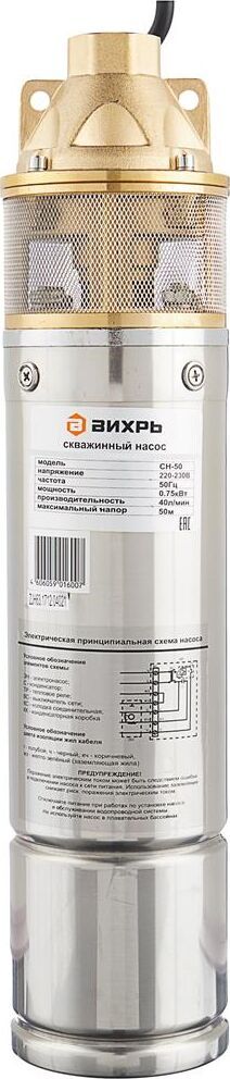 Мощность 750Вт, 220/50 В/Гц, максимальная высота подъема 50м, максимальная производительность 2400 л/час, максимальная температура воды +35 оС, диаметр насоса 102мм, степень защиты IPX8, диаметр выходного отверстия 1 дюйм.