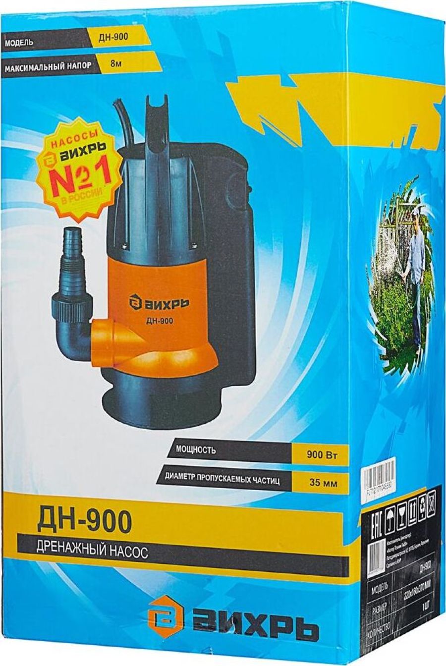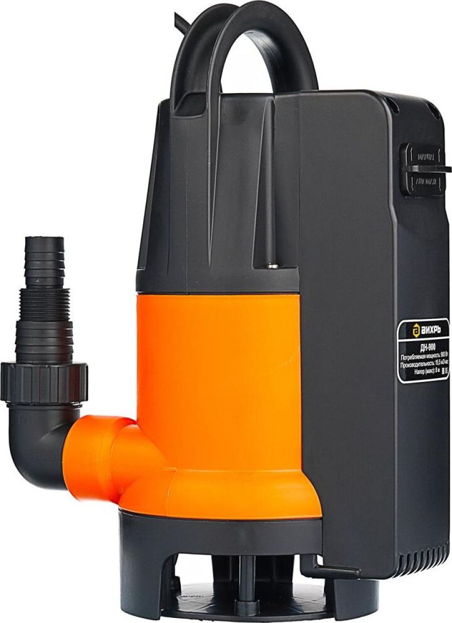 Вес нетто, кг 5,7. Высота подъема, м 8. Глубина погружения, м 8. Мощность, Вт 900. Производительность, л/мин 258. Трубное соединение, дюйм внешняя G1 1/2. Тип дренажный для грязной воды. Вид погружной. Защита от сухого хода поплавковый выключатель. Мах температура жидкости, °С 35. Соединитель в комплекте внешняя G1; елочка 1 1/4; елочка 1. Допустимая температура жидкости, °С 35. Напряжение, В 220. Материал корпуса пластик. Допустимый диаметр твердых частиц, мм 35.