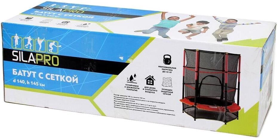 SILAPRO Батут с сеткой D140хH145см, до 45кг, от 3 до 6 лет 134-011. Компактный детский батут для активного времяпрепровождения. Его можно установить как на участке, так и дома. Прыжковая поверхность выполнена из прочного материала, который устойчив к разрывам, перепадам температуры, воздействию воды. Батут выдерживает до 45 кг