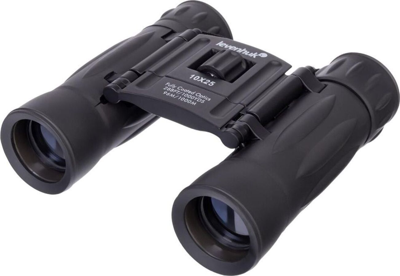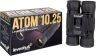 Увеличение, крат 10. Тип призмы roof. Материал оптики BK-7. Покрытие линз полное. Диаметр объектива (апертура), мм 25. Диаметр выходного зрачка, мм 2,5. Вынос выходного зрачка, мм 11. Относительная яркость 6,3. Реальный угол зрения, ° 5,7. Поле зрения на удалении 1000 м, м 96. Минимальная дистанция фокусировки, м 5,5. Возможность диоптрийной коррекции, D ±3. Межзрачковое расстояние, мм 58–72. Способ фокусировки центральная. Наглазники окуляров резиновые. Размер компактный. Корпус алюминий. Назначение туристические. Чехол/кейс/сумка в комплекте чехол. Дополнительно обрезиненная поверхность корпуса. Влагозащищенность есть. Габариты, мм 110x78x50.