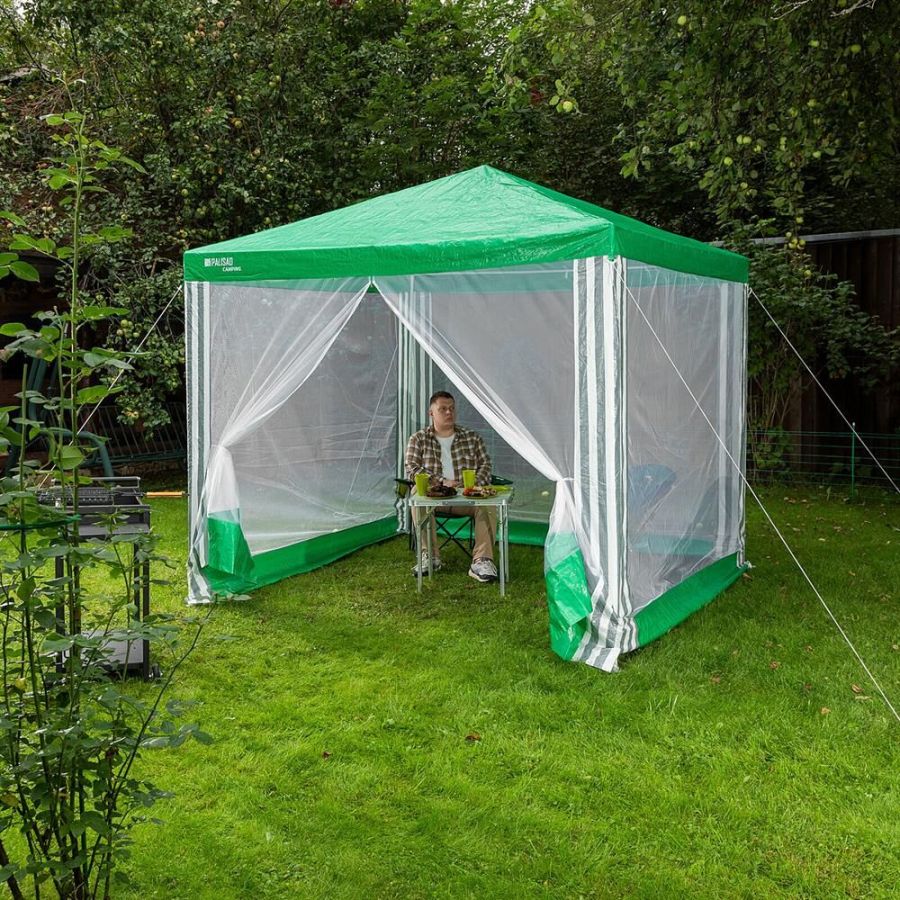 Садовый тент PALISAD Camping 2.5х2.5/2,5 69520 используется для защиты от солнца. Москитная сетка которая защищает от проникновения насекомых внутрь. Каркас выполнен из стали, крыша из полиэтилена, а сетка из нейлона. Тип тент. Влагостойкость нет. Цвет зеленый. Материал каркаса сталь. Материал тента полиэтилен. Москитная сетка да. Пол нет. Габариты в разложенном виде, мм 2500х2500. Высота, мм 2400. Длина, мм 2500 Ширина, мм 2500. Вес нетто, кг 6,5.