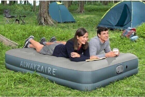 Размер: 203*152*36 см Материал: полиэстер, ПВХ Спальных мест: двухместный Максимальная нагрузка: 350 кг Покрытие: флокированное Встроенная подушка и насос Высота матраса (без подушки): 36 см Высота матраса (без подушки): 33 см В комплект входит: 1 надувной матрас, 1 сумка для хранения, зарядный USB-кабель, ремонтная сумка Преимущества: Наружный материал Fortech™ в 150 раз более устойчив к истиранию, на 92% более устойчив к растяжению и на 75% более устойчив к проколам, чем ПВХ Сбалансированная конструкция с горизонтальными I-образными внутренними ребрами жесткости (I-beam) Встроенный аккумуляторный насос AlwayzAire™ двойного действия надувает матрас за 3 минуты. Матрас мгновенно сдувается при отсоединении насоса Внутренние датчики отслеживают давление воздуха, а тихий насос поддерживает постоянную жесткость надувной кровати в течение всей ночи