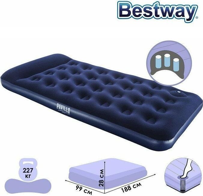 Серия: EASY INFLATE (Flocked AirBed). Размеры: 188х99х28 см. Максимальная нагрузка: 150 кг. Материал: Высококачественный винил. Толщина материала: 0.38 мм. Покрытие: Флокированное. Спальных мест: односпальный. Насос встроенный ножной. Размер упаковки: 35 см х 33 см х 7,5 см. Вес: 3 кг.