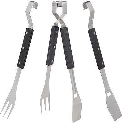 Материал: ABS-пластик, нержавеющая сталь 430 Длина 44 см, вес 460 г Толщина металла: 1.5 мм Набор для барбекю 4 в 1 из нержавеющей стали идеально подойдет для пикника, поездки на природу, дружеских поседелок на свежем воздухе. В наборе имеется все необходимое для правильного приготовления мяса. Четыре предмета (щипцы, вилка, лопатка, открывалка для металлических пробок бутылок) входящие в набор идеальны для всех видов гриля и вашего отдыха на природе. Мультифункциональность: может использоваться как вилка, лопатка, открывалка для бутылки, а в сложенном виде - как щипцы. Набор компактен и не займет много места. Форма ручки позволяет подвесить на крючок или гриль. Запатентованная технология соединения элементов.
