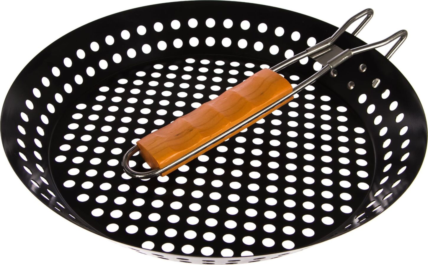 Решетка-жаровня предназначена для приготовления морепродуктов, а так же для мяса и овощей, нарезанных мелкими кусками. Особенности: Изготовлена из высококачественной жаропрочной стали с антипригарным покрытием. Деревянная эргономичная рукоятка. Складная рукоятка. Преимущества; Долговечна. Продукты не прилипают к рабочей поверхности в процессе приготовления. Удобна при транспортировки и хранении. Тип решетка. Назначение универсальное. Набор нет. Общая длина, мм 530. Форма решетки круглая. Длина решетки, мм 530. Огнеупорное кольцо нет. Двойная решетка нет. Материал рабочей части пищевая сталь. Ширина решетки, мм 305. Материал ручки дерево. Антипригарное покрытие да. Чехол нет. Вес нетто, кг 0,7. Размер рабочей поверхности, мм 530х305х40.