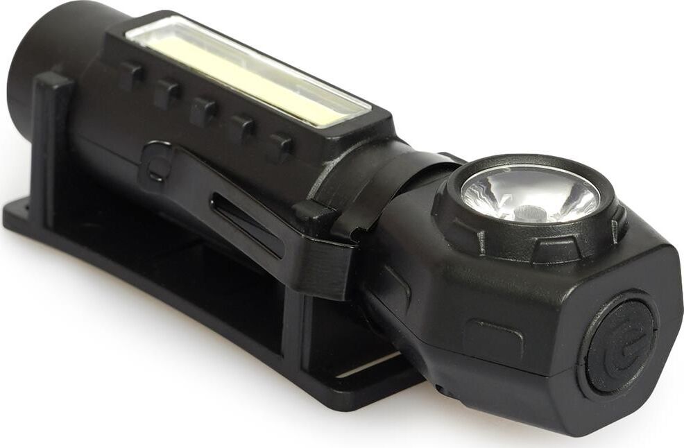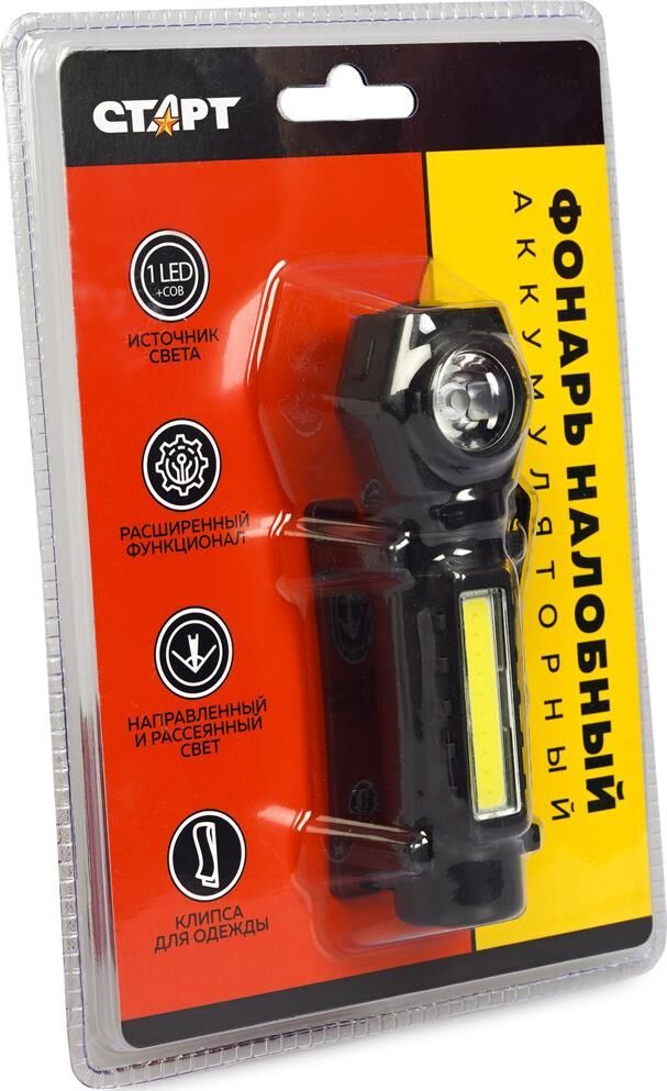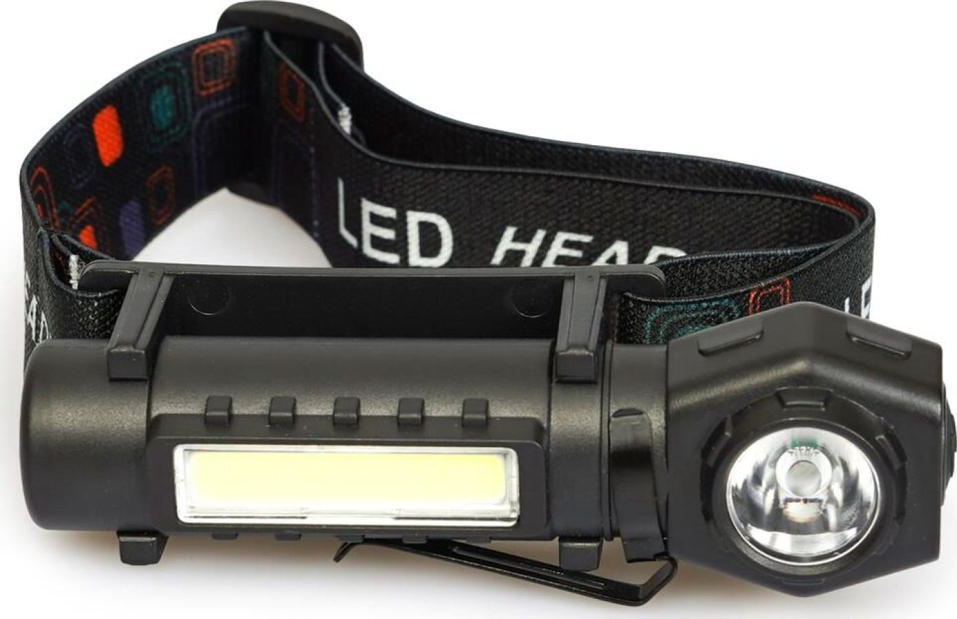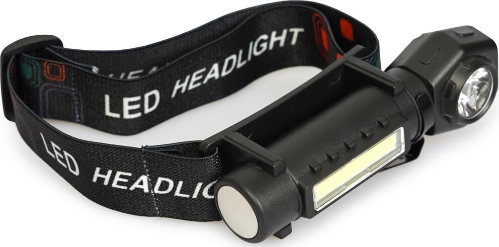 Налобный 2в1 Источник света 1+1 COB LED Световой поток 300 Лм + 150 Лм Дальность луча - 50 М Материал корпуса - алюминий Источник питания - 800мАч