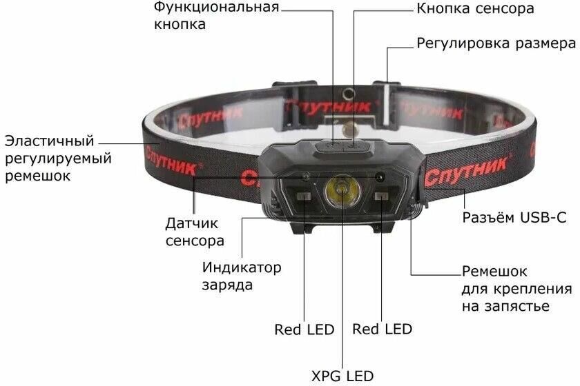 Источник света: XPG LED 3W + Red LED х 2 / максимальный световой поток, лм: 160 / количество режимов работы: 6 / максимальная дальность, м: 60 / время непрерывной работы, ч: 15 / источник питания: встроенный литий-полимерный аккумулятор 3,7В 800 мАч (не подлежит замене) / способ заряда: кабель USB-С / время полного заряда, ч: 3 / регулируемый угол наклона корпуса фонаря (0°-45°) / прорезиненная функциональная кнопка / ударопрочность при падении с высоты до 1,5 м / IP44 / материал корпуса: АВС-пластик / индивидуальная цветная коробка