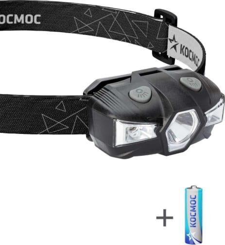 Фонарь налобный КОСМОС (KOC517B)- помощник туриста. Опытные туристы выбирают фонарик по критериям, которые знают те, кто отправляются в настоящие многодневные походы: фонарик должен быть максимально лёгким - важен каждый грамм в долгих переходах; не так важна яркость, как экономичность батареек. Батарейки АА лучше, чем ААА - по габаритам они больше в два раза, а по ёмкости - в три! Эта модель работает от одной батарейки АА (в комплекте). Только нужные функции: яркий луч, экономичный режим (применяется как основной), а когда все спят — красный. Источник света: 2Вт LED; + красный свет; Источник питания: батарейка 1xAA R6 (входит в комплект); Количество режимов: 5 (отдельная кнопка: луч яркий, экономичный, мигающий / отдельная кнопка: боковой красный, мигающий); Световой поток: 90 лм./+ красный свет; Дистанция освещения: 35 м.; Корпус: ABS-пластик; IP54; Размер: 6x3.5x4 см.; Налобный регулируемый эластичный ремешок