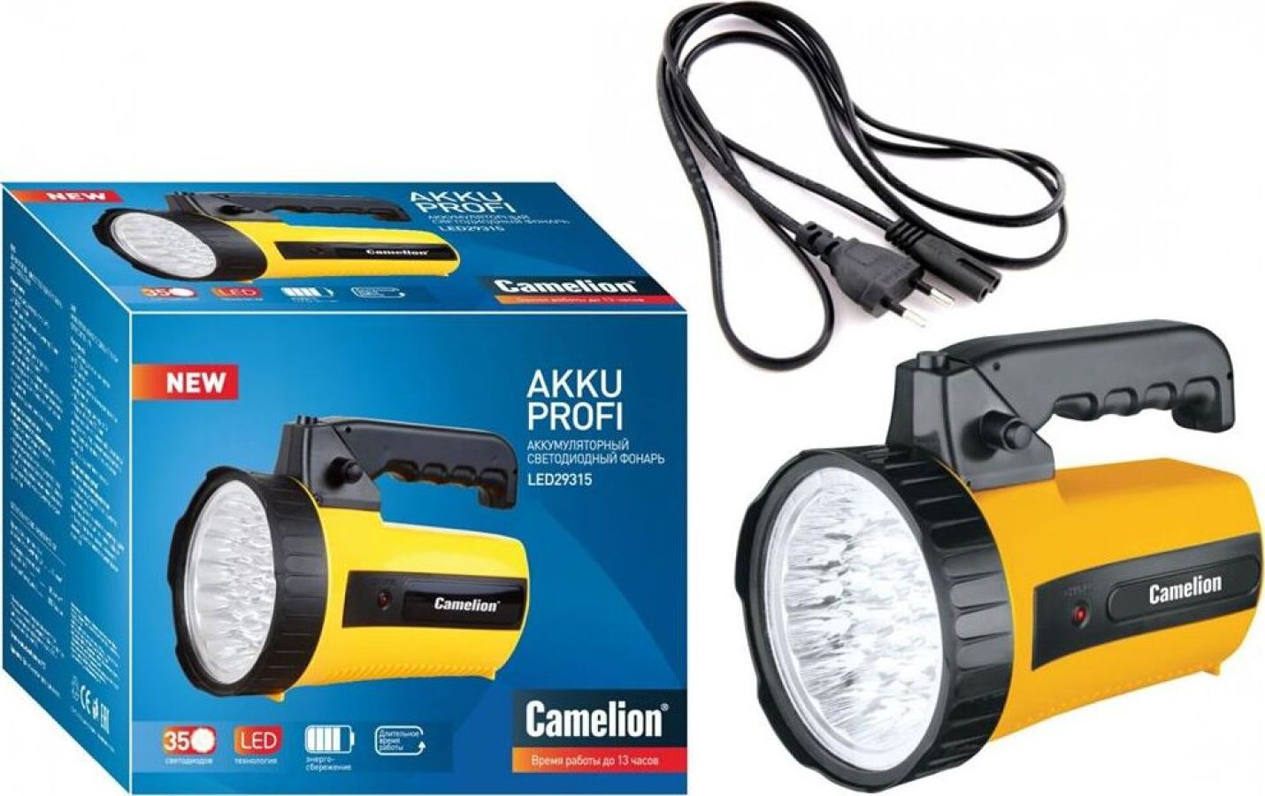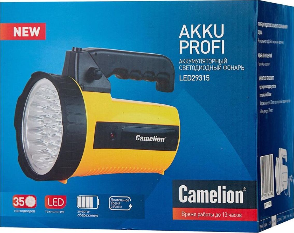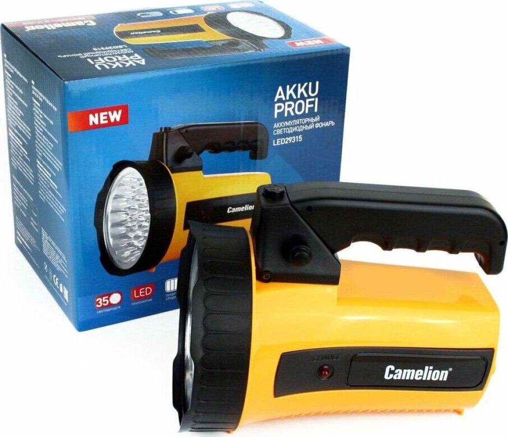 Camelion LED29315 (фонарь аккум. 220В, желтый, 35 LED, 6В 4А-ч, пластик, коробка)