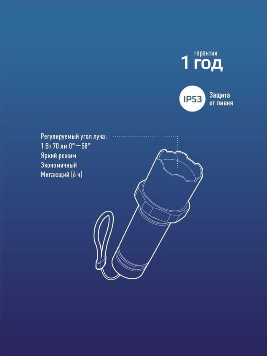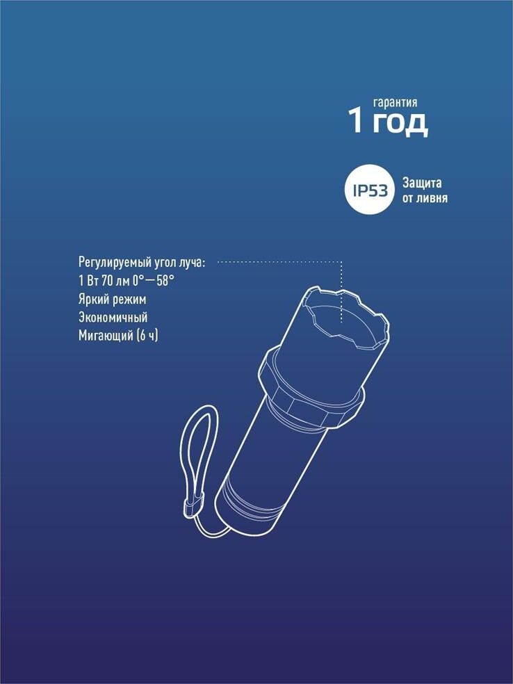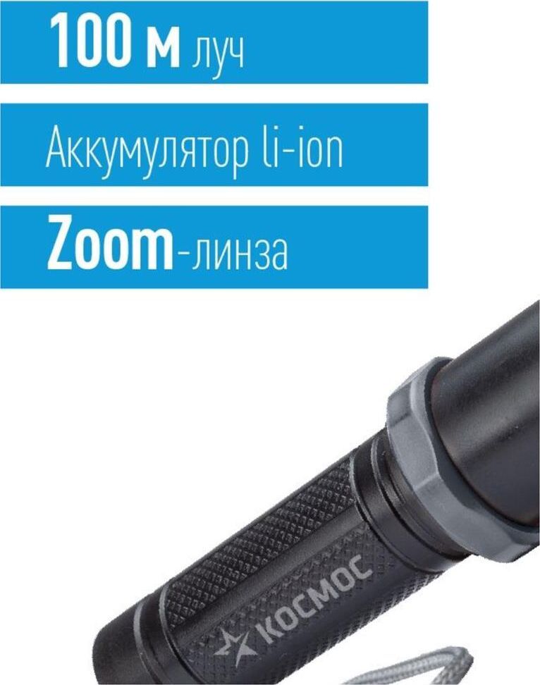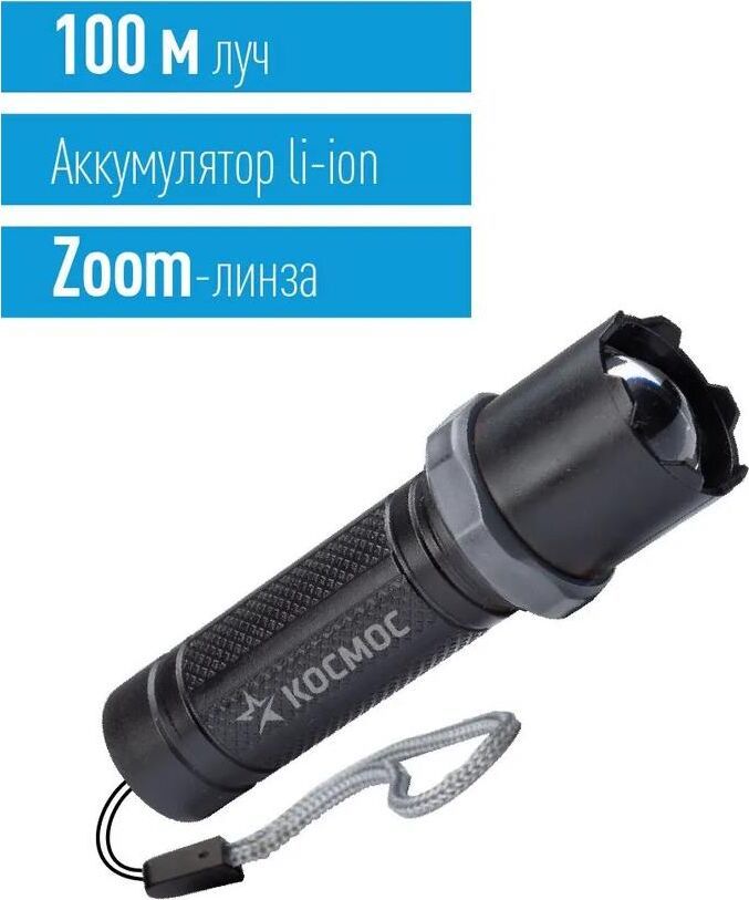 Карманный аккумуляторный ручной фонарь КОСМОС (KOS117Lit), очень легкий и приятный в руках. Дальний узконаправленный луч – самый «дальнобойный», оптика позволяет настроить ширину луча. Три режима работы – яркий, средний и мигающий. Универсальный, востребованный дизайн. Источник света: 1Вт LED (с линзой — при сохранении мощности светового потока, линза увеличивает дальность луча света и интенсивность светового излучения; зум — регулировка дальности и ширины луча); Источник питания: Li-ion аккумулятор 14500 3,7В 450 мА/ч (встроенный), зарядный USB-шнур в комплекте; Количество режимов: 3 (яркий-экономичный-мигающий); Световой поток: 70 лм.; Дистанция освещения: 100 м.; Корпус: ABS-пластик (стилизация под металл), IP53; Компактный карманный размер: 10.3x2.9x2.9 см.; Ремешок ручной