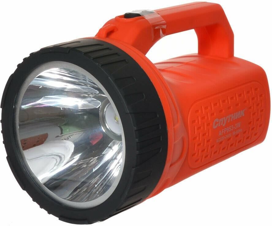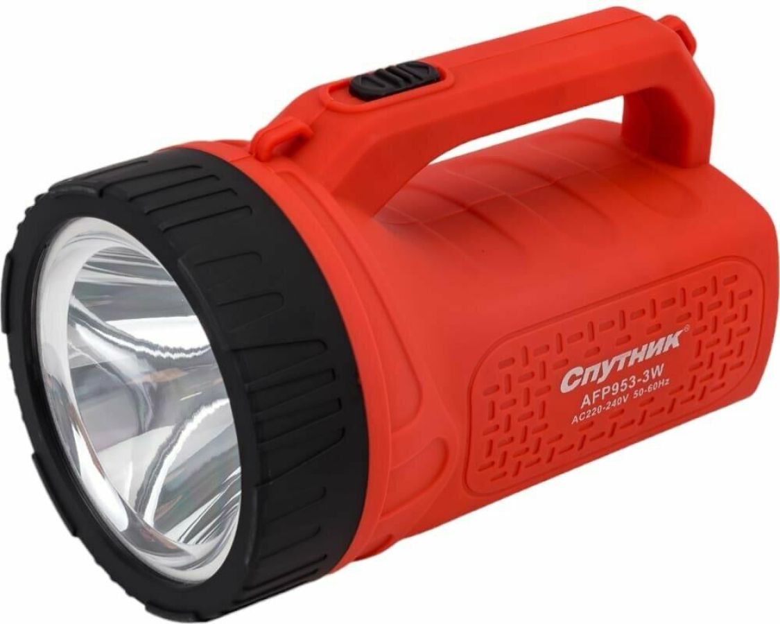 AFP953-3W прожектор / 1 LED мощностью 3 / аккумулятор 1200 mAh 4V / время заряда: 15 ч / время непрерывной работы: до 5 ч / материал корпуса: пластик с каучуковым напылением / цвет корпуса: красный/чёрный / индивидуальная цветная коробка