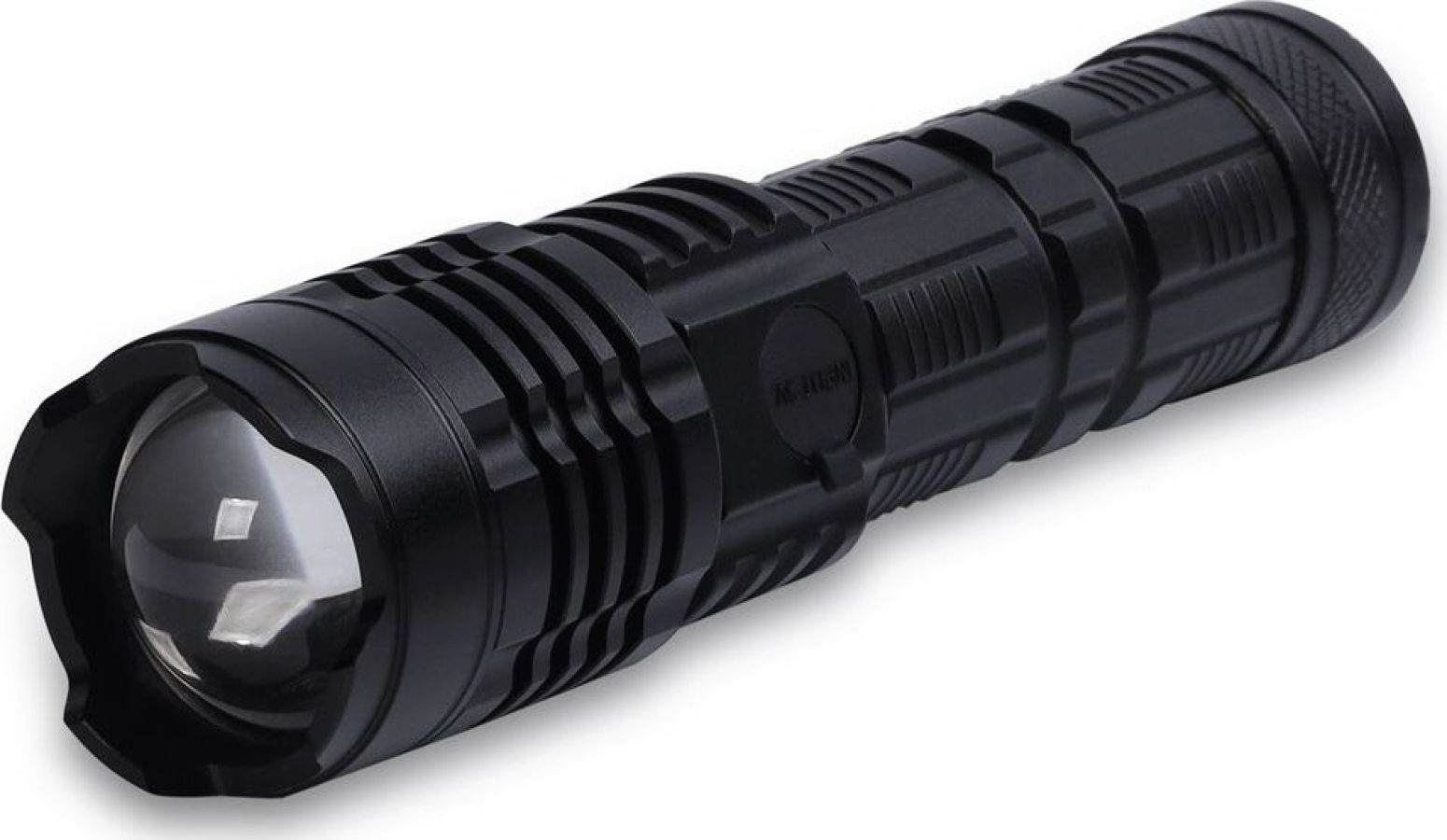 Материал: анодированный аллюминий; Тип светового элемента: CREE XHP-50; Световой поток: 1600 Лм; Мощность: 18 Вт; Дальность светового луча: 300 м; Время работы: 2-5 ч (в зависимости от режима); Источник питания: 1X26650 5000 мАч; Пять режимов работы: высокий 1300 Лм — 2 ч средний 800 Лм — 3,5 ч низкий — 300 Лм — 5 ч стробоскоп 300 Лм — 10 ч сигнальный 300 Лм — 12 ч Доп. возможности: фокусировка луча, индикатор заряда аккумулятора; Комплектация: Micro USB кабель; Защита от пыли и влаги: IP-67; Размеры: 160x40x40; Упаковка: цветная картонная коробка.