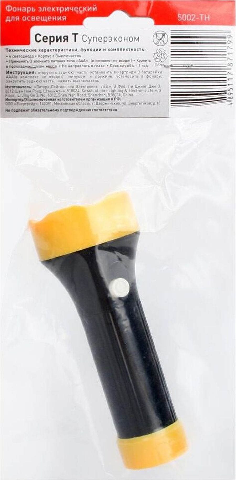 ULTRAFLASH 5002-ТН (фонарь, черный, 4LED, 1 реж, 3XR03, пласт, блист-пакет)
