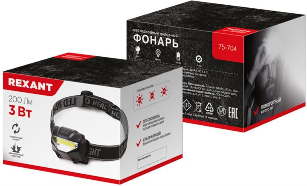 Налобный фонарь с мощным ярким COB диодом REXANT отлично подходит для рыбалки, охоты, во время строительных и ремонтных работ. Мощный заливной свет с тремя режимами работы: 100%, 50% и пульсирующий свет. Три режима работы 100%, 50% и пульсирующий. Вы можете с легкостью изменить угол наклона в любых направлениях или повернуть вокруг своей оси фонарь на 360 градусов. Питание от трех батареек типа ААА (в комплект не входят).