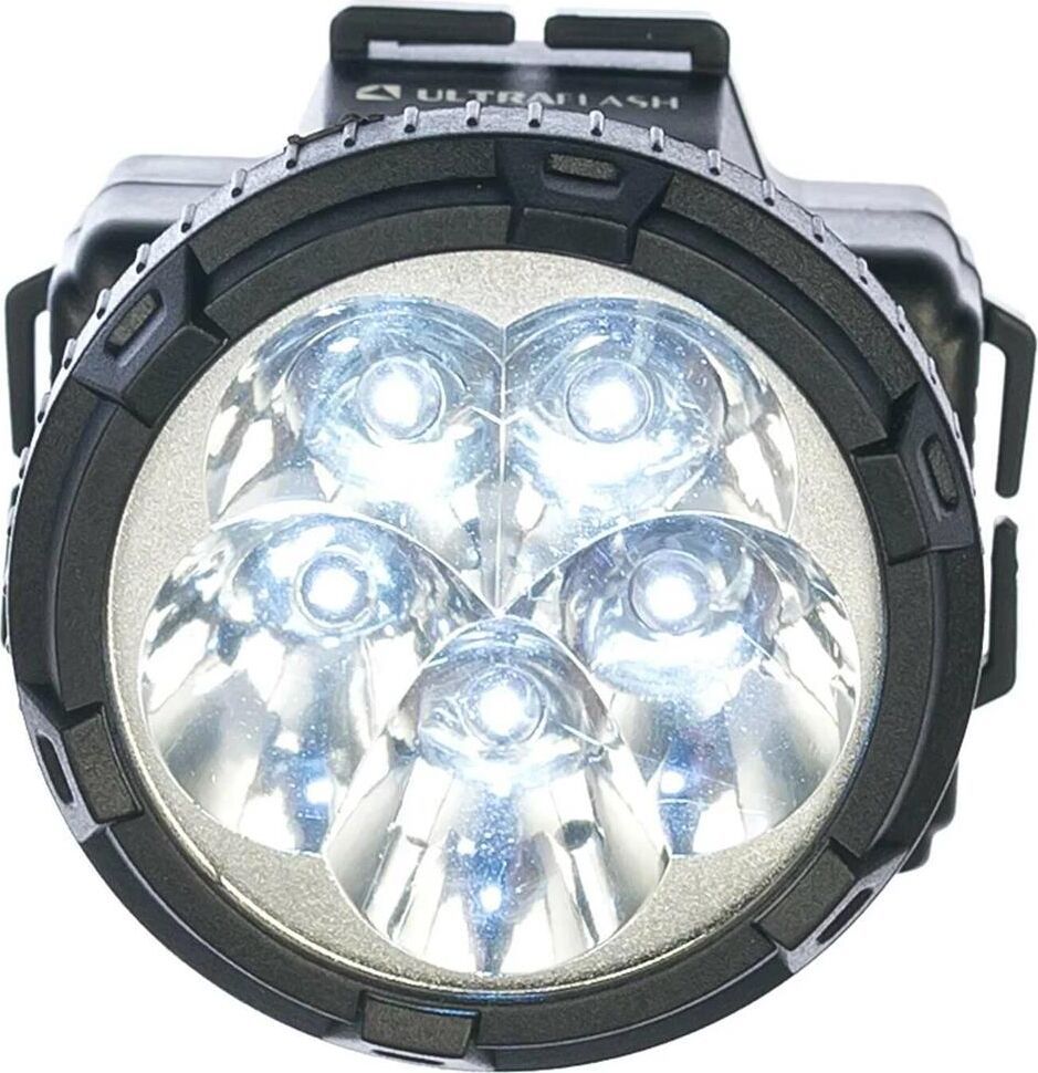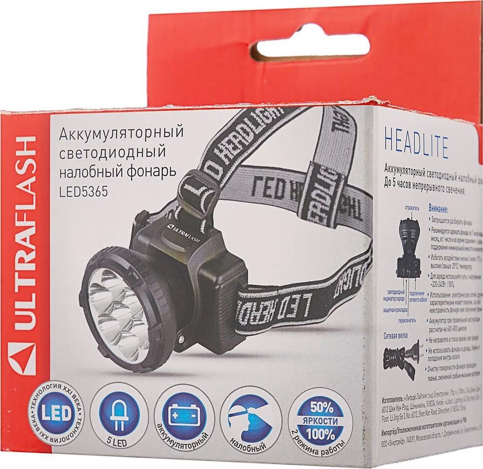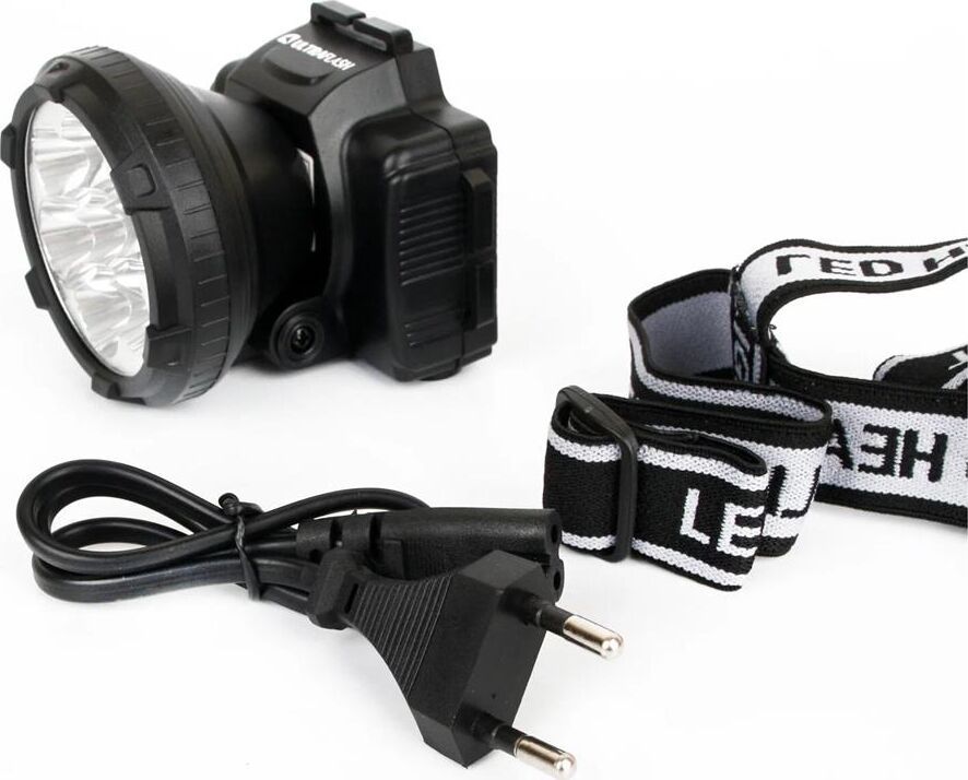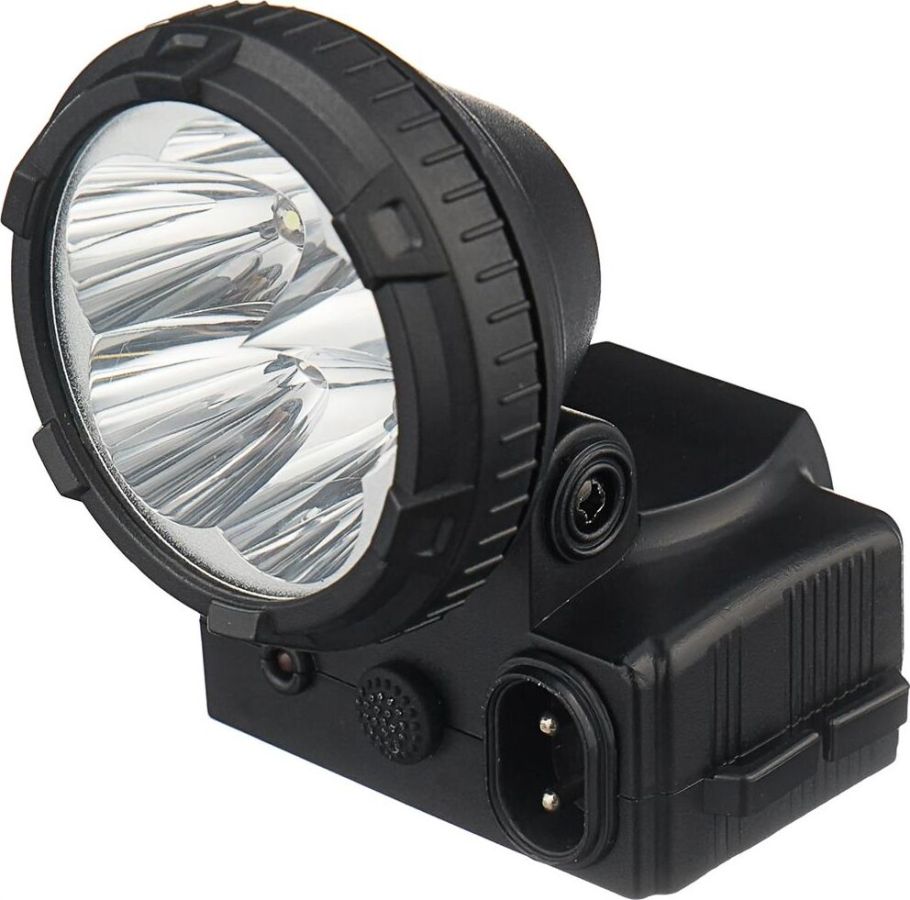 Фонарь электрический светодиодный налобный аккумуляторный. Цвет корпуса: матовый черный. Материал корпуса - пластик. Источники света - 5 светодиодов с индивидуальными отражателями и суммарным световым потоком - до 20 люмен. Дистанция освещения - до 20 метров. 2 режима работы - 5 светодиодов в режиме полной мощности / 5 светодиодов в режиме половины мощности. Выключатель: двухпозиционный кнопочный. Время работы до 5 часов. Время заряда 7 часов. Степень пыле-влаго-защиты IP22.