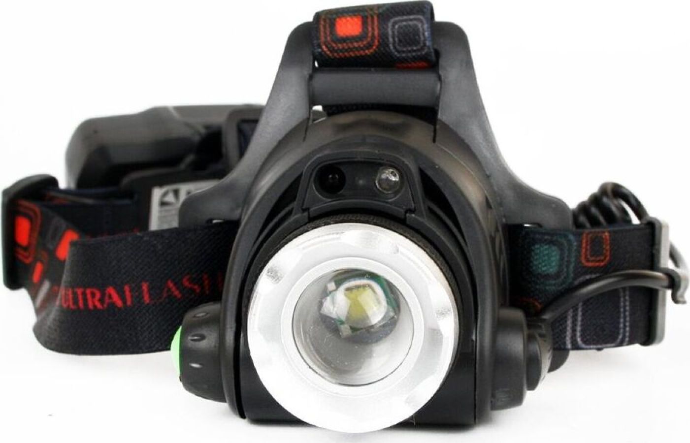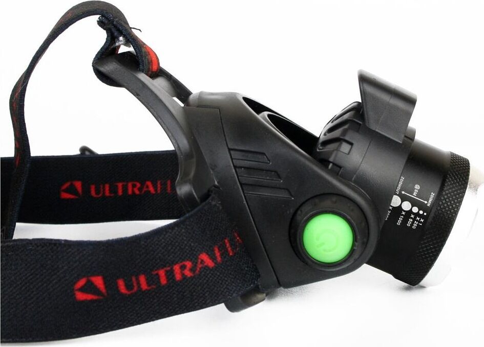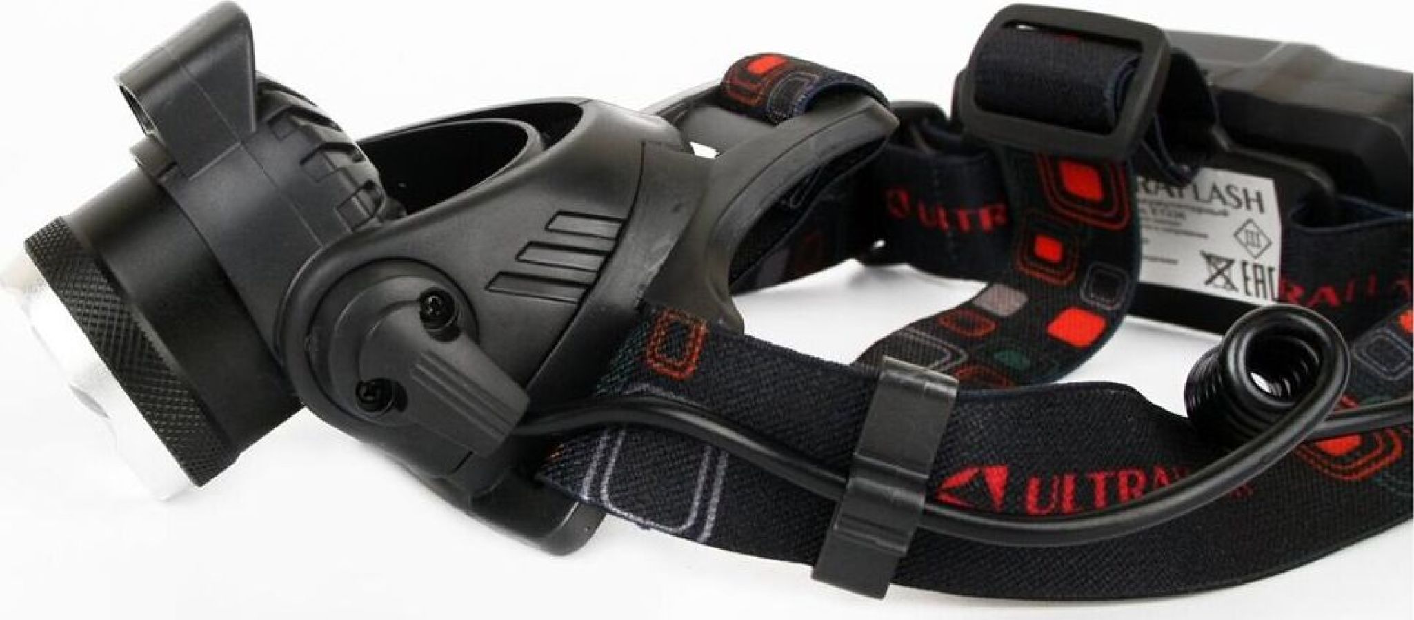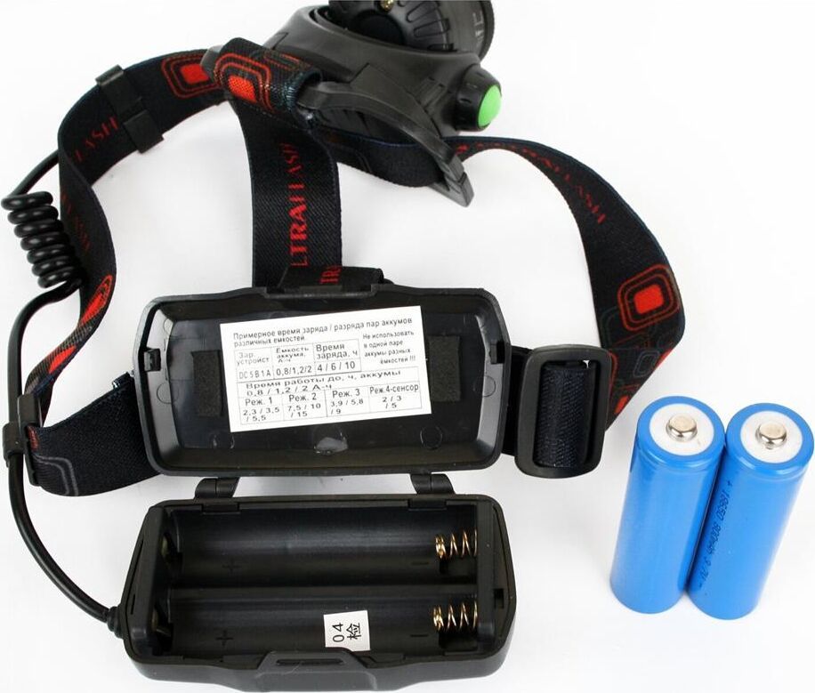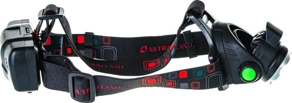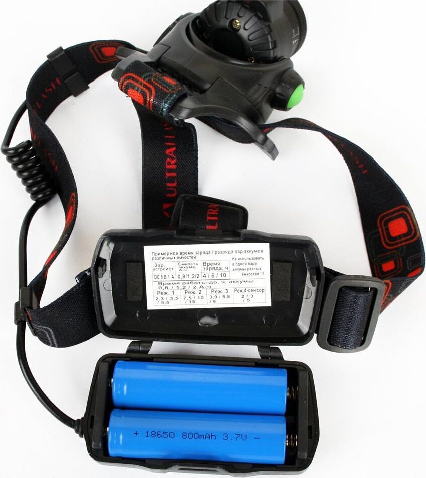 Фонарь Ultraflash электрический светодиодный налобный аккумуляторный. Цвет корпуса: черный. Материал: корпуса фонаря - алюминиевый сплав / пластик. Источник света - светодиод XML-T6 с потребляемой номинальной мощностью 4 Вт, световой поток до 300 люмен. Дистанция освещения - до 250 метров. Регулируемый фокус (ZOOM). 3 режима работы - 100% яркости / 30% яркости / мигалка. Возможность работы и от одного, и от двух аккумуляторов. Возможность работы напрямую от Powerbank через вход Micro USB. Индикатор заряда, меняющий цвет при окончании заряда. Выключатель: четырехпозиционный кнопочный. Режим работы, когда включение / выключение регулируется пироэлектрическим сеносром движения. Время работы при полностью заряженном аккумуляторе (для емкости 1200 мА-ч): : в режиме 100% - до 3,5 часов, в режиме 30% - до 10 часов, мигающий режим - до 5,8 часов. Заряд через вход Micro USB при помощи распространенных зарядных устройств для телефонов с Андроидом. Время заряда (ток заряда 1А, аккумуляторы 1200 мА-ч) - 6 часов. Комплект