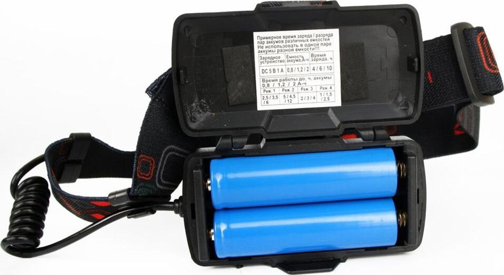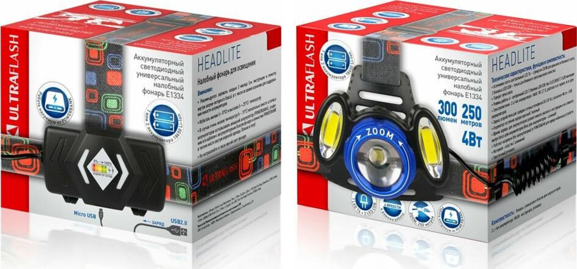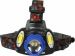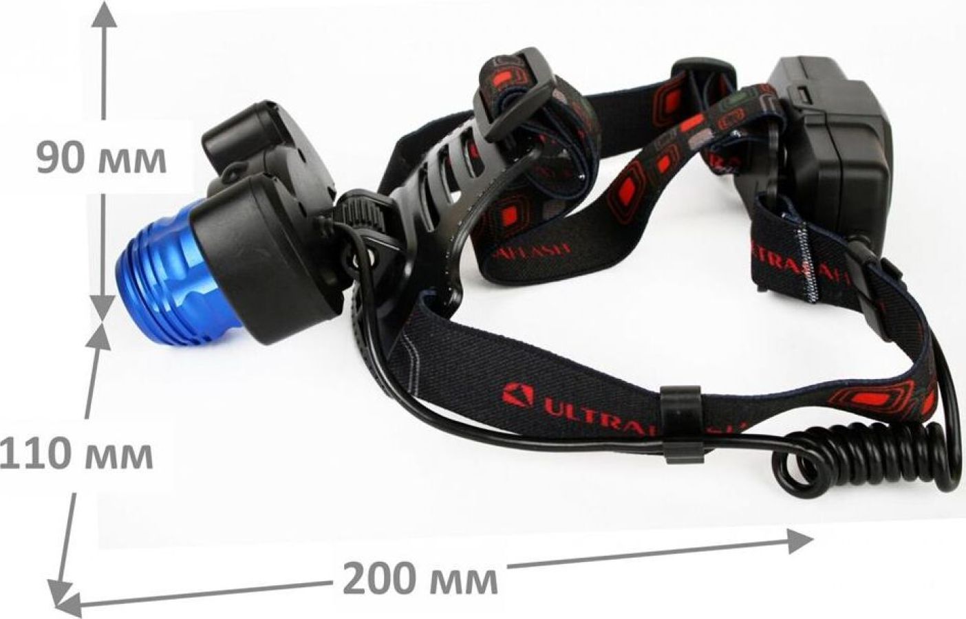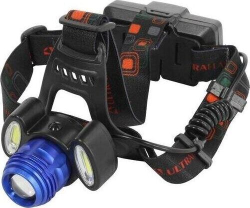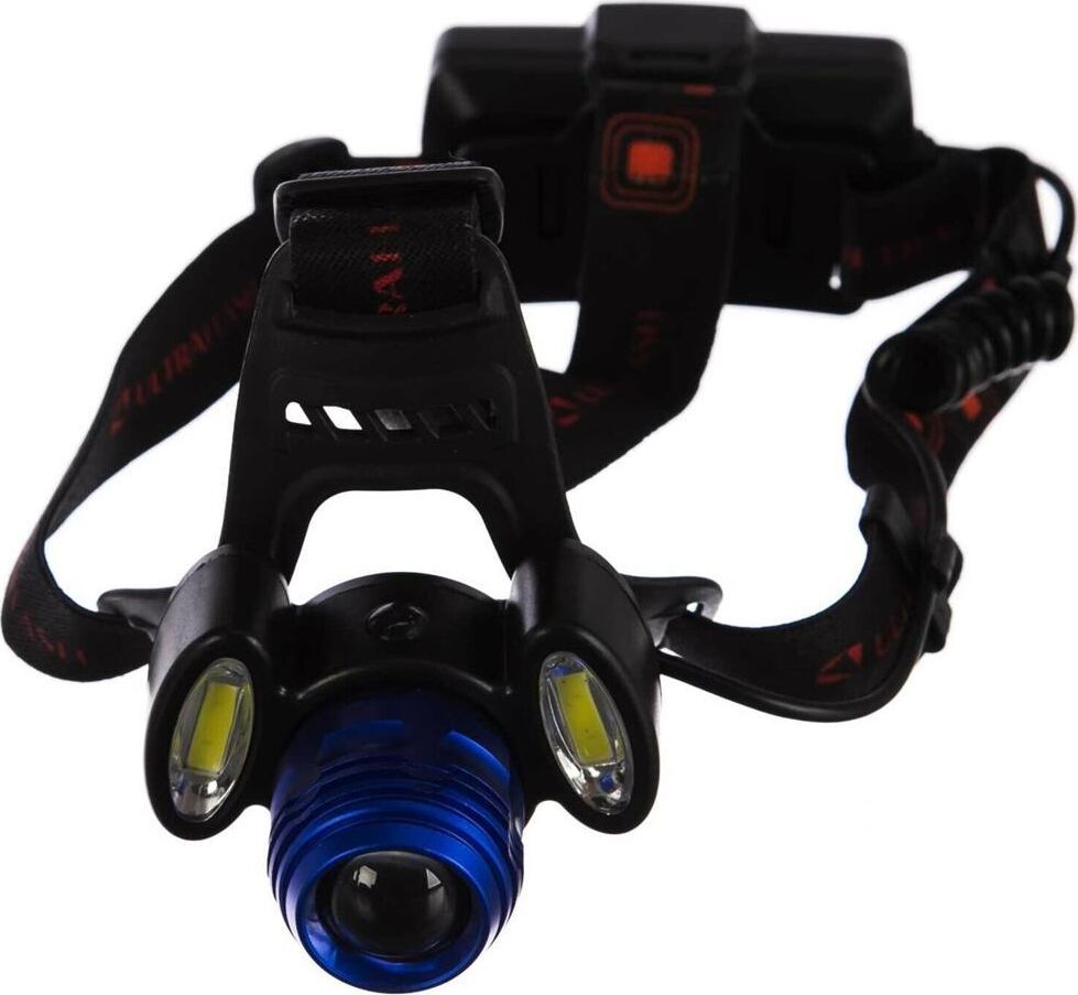 Фонарь Ultraflash электрический светодиодный налобный аккумуляторный. Цвет корпуса: синий / черный. Материал: корпуса фонаря - алюминиевый сплав / пластик. Источники света - светодиод XML-T6 с потребляемой номинальной мощностью 4 Вт, 2 светодиода типа COB с потребляемой мощностью 2 Вт. световой поток до 300 люмен. Дистанция освещения - до 250 метров. Регулируемый фокус (ZOOM). 4 режима работы - XML-T6 / 2 боковых COB LED / все LED BOOST / мигалка. Возможность работы и от одного, и от двух аккумуляторов. Возможность работы напрямую от Powerbank через вход Micro USB. Индикатор заряда, меняющий цвет при окончании заряда. Выключатель: четырехпозиционный кнопочный. Время работы при полностью заряженном аккумуляторе (для емкости 1200 мА-ч): : в режиме XML-T6 - до 3,5 часов, в режиме 2 X COB - до 4,5 часов, все LED - до 3 часов, мигающий режим - до 1,5 часов. Заряд через вход Micro USB при помощи распространенных зарядных устройств для телефонов с Андроидом. Время заряда (ток заряда 1А, аккумуляторы 1200 мА-ч) - 6 ч