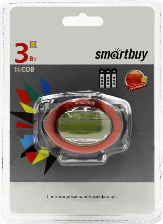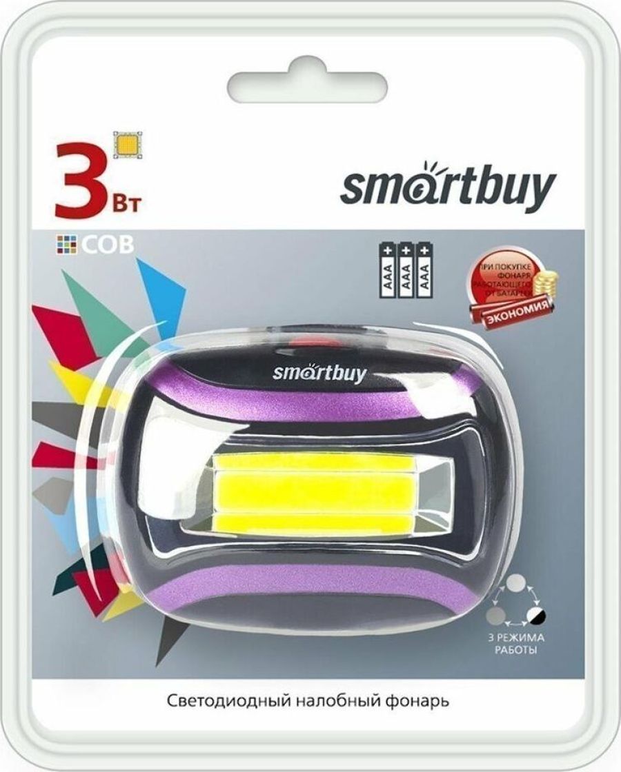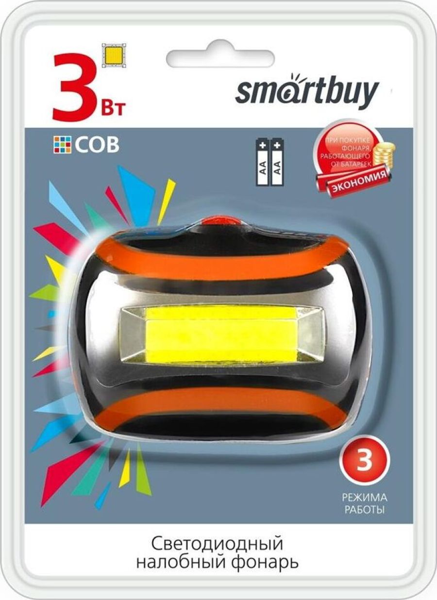 Фонарь налобный Smartbuy SBF-HL021 1 LED COB 3W (100lm), 2 режима, дальность 50м, питание 3хAAA, пластик/металл, черный, SBF-HL021
