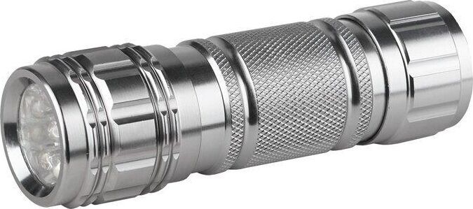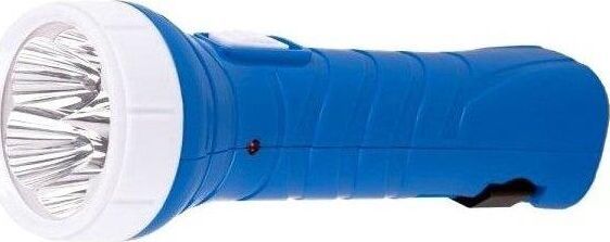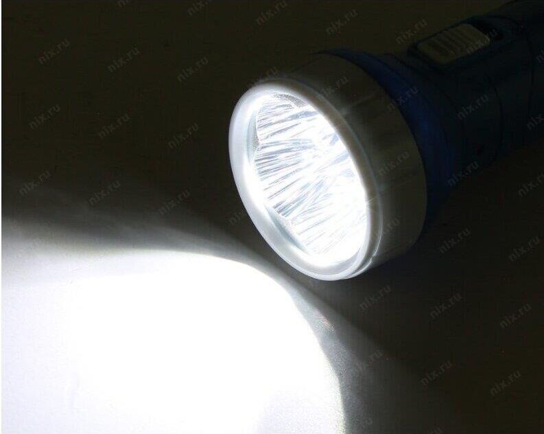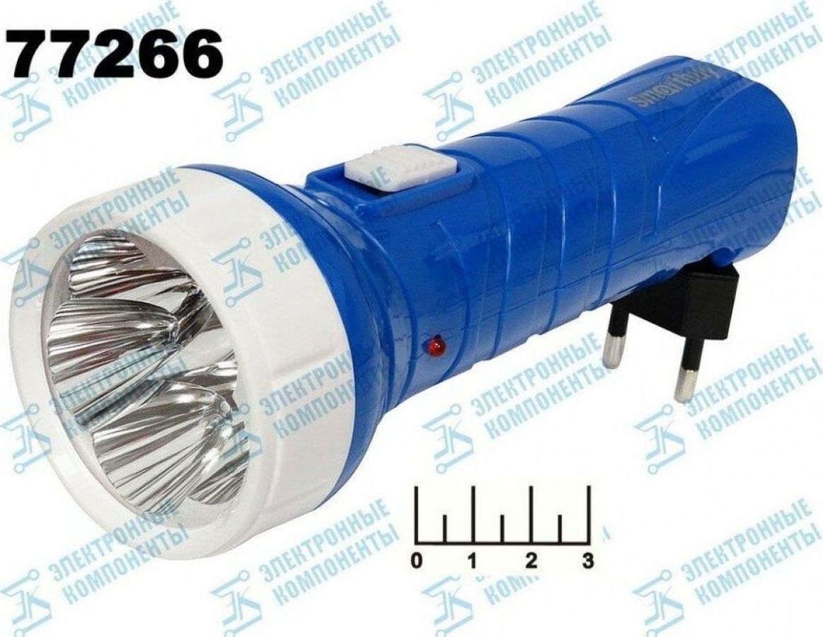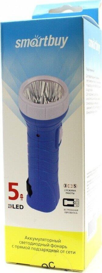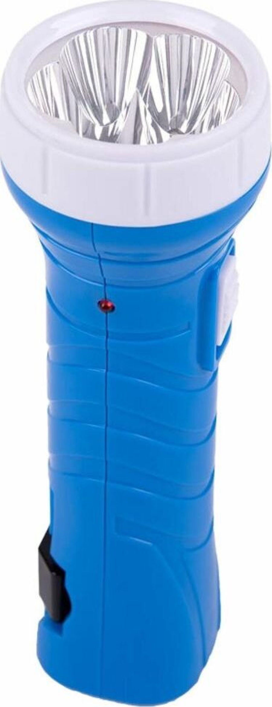 Аккумуляторный светодиодный фонарь с прямой зарядкой, источник света: 5 LED, отражатель: зеркальный, материал корпуса: пластик/металл.