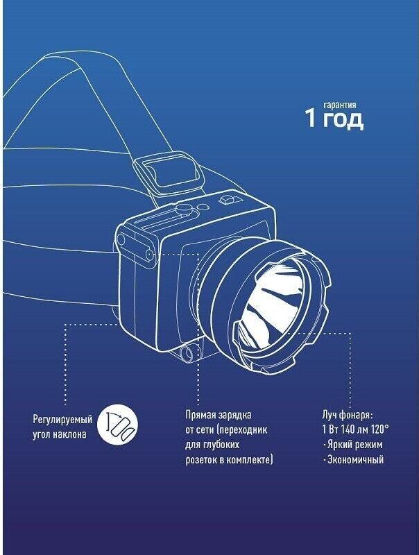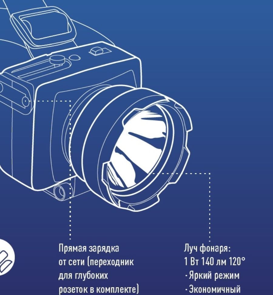 LED ,1W,110лм 2реж., встроенный аккумулятор, прямая зарядка от сети