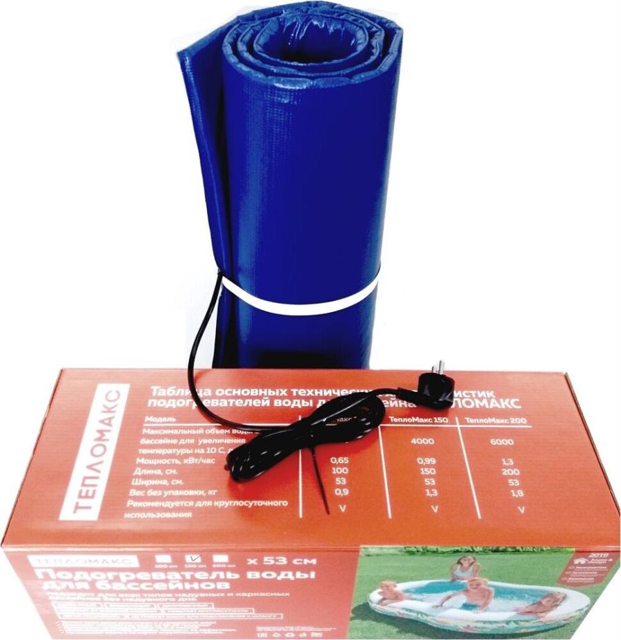 Подогрев воды в надувных/каркасных/полипропиленовых бассейнах из ПВХ без надувного дна Размер, мм.: 1000х530 Мощность, Ватт/ч: 650 Напряжение, В.: 220 Темп. поверх., С: 40-45 Объем в м3: 2000 литров Толщина (мм): 10 Вес (кг): 1 кг
