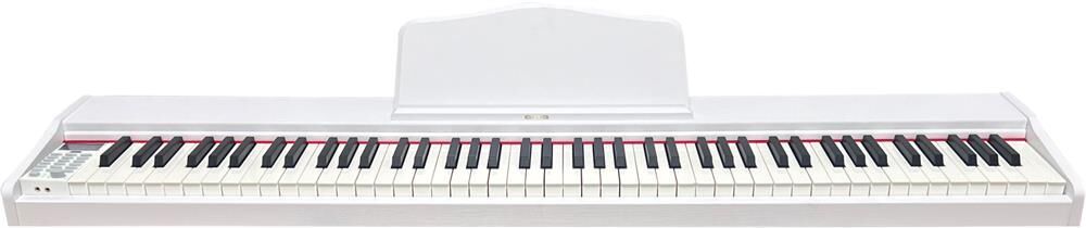 Цифровое профессиональное пианино, Цвет белый, 88 полноразмерных полувзвешенных клавиш, Корпус из МДФ, Полифония 32 голоса, 880 тембров / 600 ритмов, 80 Демокомпозиций, Функция записи и воспроизведения, метроном, Цифровой дисплей, USB порт, Аудиовход/аудиовыход, два разъема для наушников, разъем для подключения педали, Педаль в комплекте, Источник питания: 15В, 3А, Габариты 143x32.5x18 (cм)