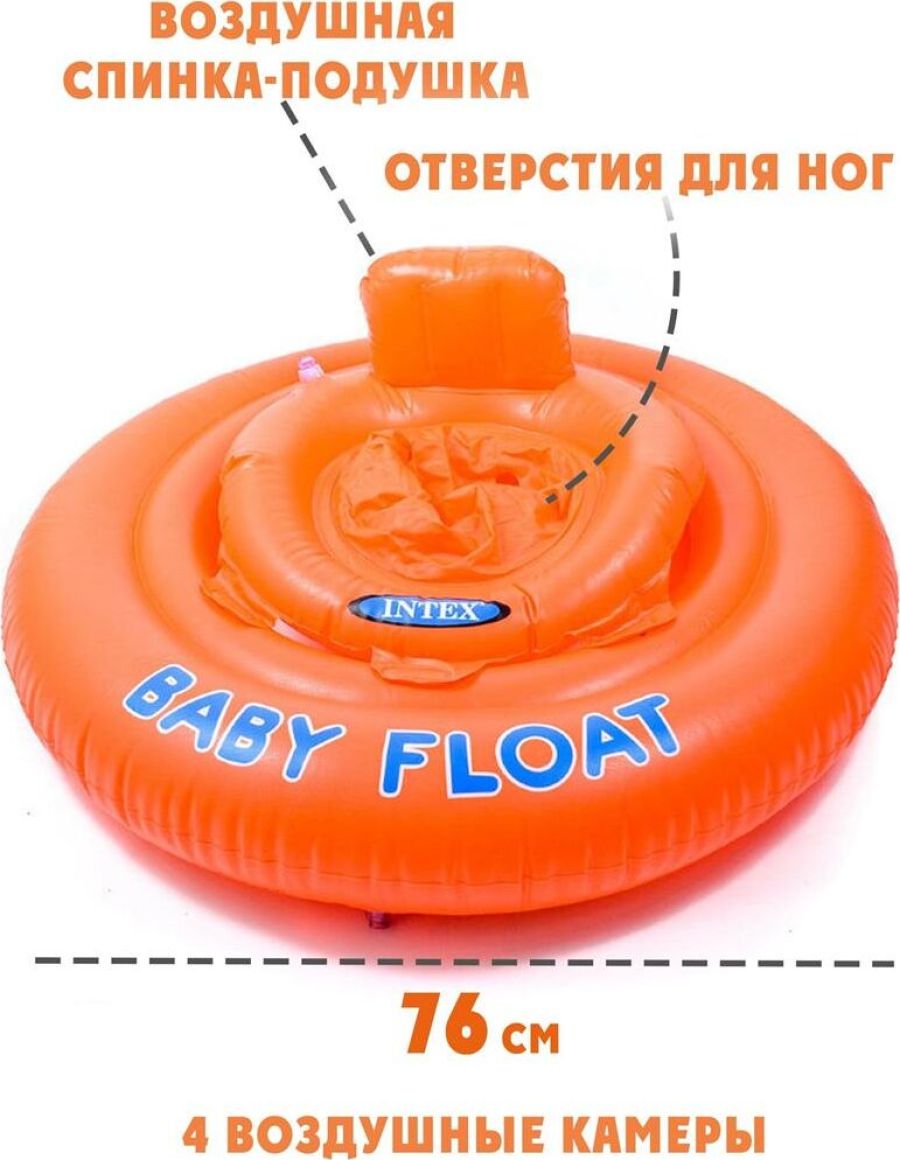 Надувной круг для плавания с сидением INTEX изготовлен из экологически чистого ПВХ, без запаха. Размер в надутом состоянии: 76 см. Возраст - 1-2 г.