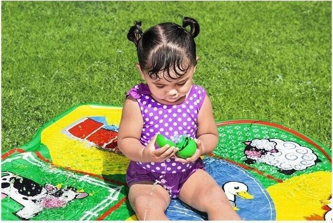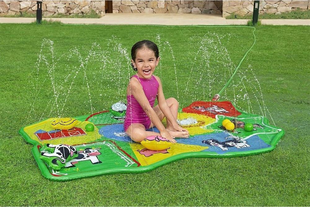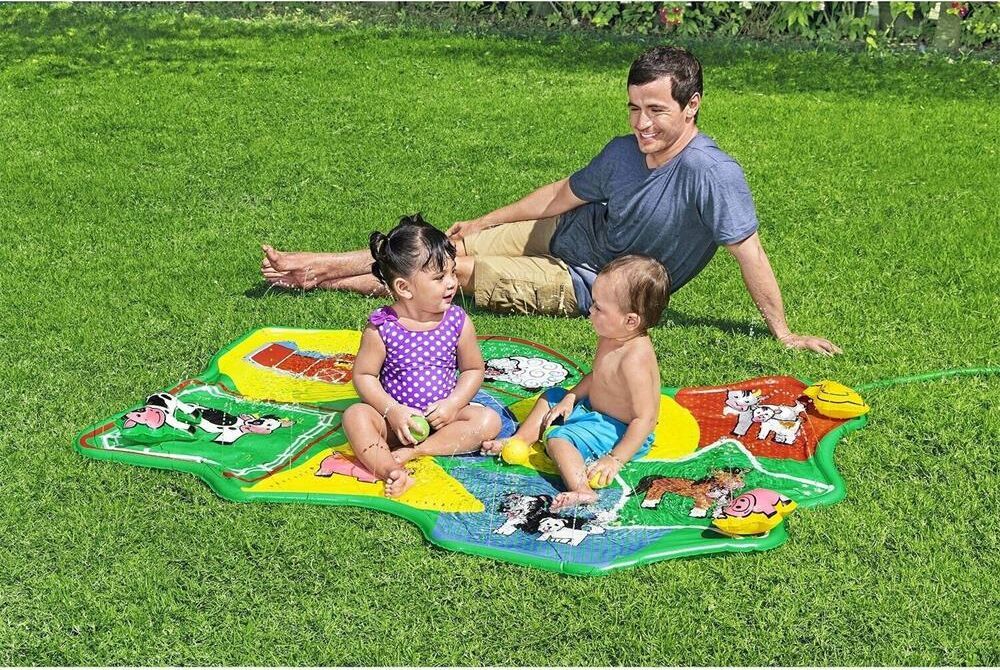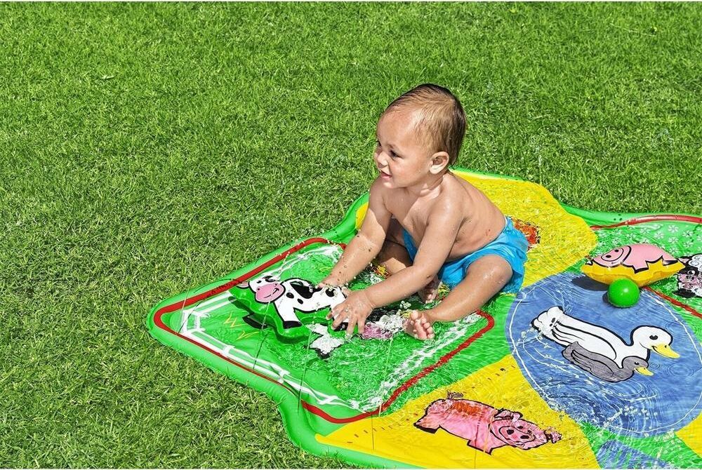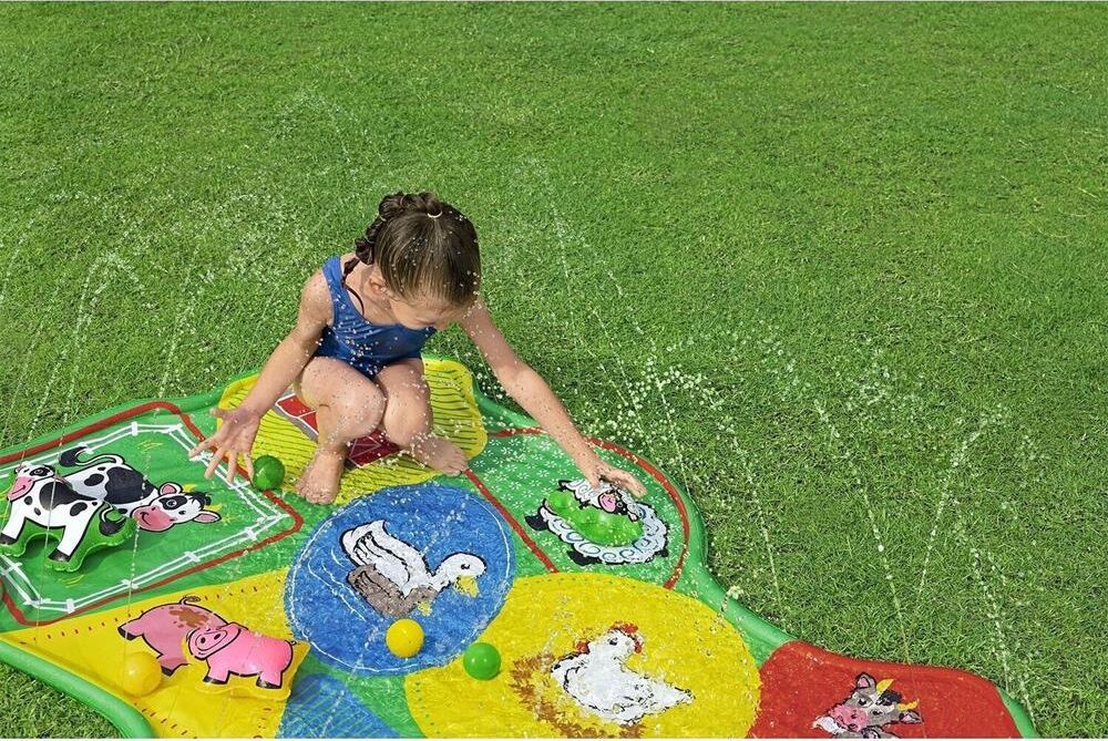 Водный коврик "НА ФЕРМЕ Barnyard Babies" сочетает в себе очарование и веселье фермы с водными развлечениями В комплект водяного коврика входят четыре игровых мяча. Яркие базовые цвета, дизайн фермы и основные формы идеально подходят для маленьких детей - это идеальное игровое начало для того, чтобы привыкнуть к воде. Помогите своим детям обрести уверенность в воде, а также развить их мелкую моторику. Благодаря компактной конструкции водяной коврик можно легко перемещать по саду, а также собирать и складывать, чтобы сэкономить место. Размер: 165x112см.