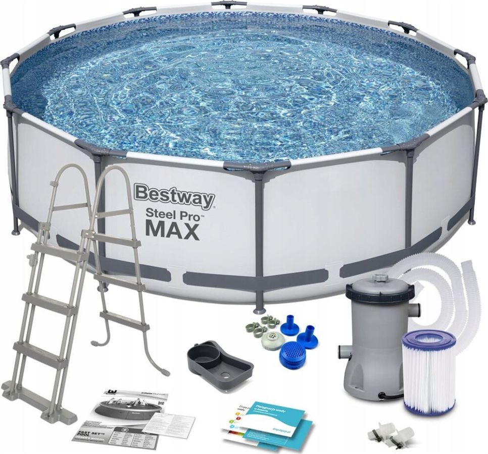 Каркасный бассейн Steel Pro Max (полный комплект) 457*107 см, 14970 л, Bestway 56488 Каркасный бассейн 457x107 от производителя Bestway - отличный качественный продукт. Основной особенностью этого бассейна является простая и быстрая установка, которая не займет у вас много времени и сил. Стенки бассейна выполнены из трех прочных слоев – два слоя плотного винила и один из полиэстера. Плотный винил имеет высокую устойчивость к растягиванию и стиранию, а так же воздействиям ультрафиолетовых лучей и ударам. Конструкция каркасного бассейна не имеет острых углов, что обеспечивает безопасную эксплуатацию. Каркас из высококачественного метала, надежно удерживает всю конструкцию бассейна даже при максимальных нагрузках. Характеристики Производитель: Bestway Размеры и вес: Длина: 4.57 м Ширина: 4.57 м Глубина: 107 см Объем: 14.97 куб.м Готовность к заливке воды: 30 мин Комплектация Бассейн Тент Лестница Инструкция Настилка под бассейн Фильтр-насос 3028 л/ч