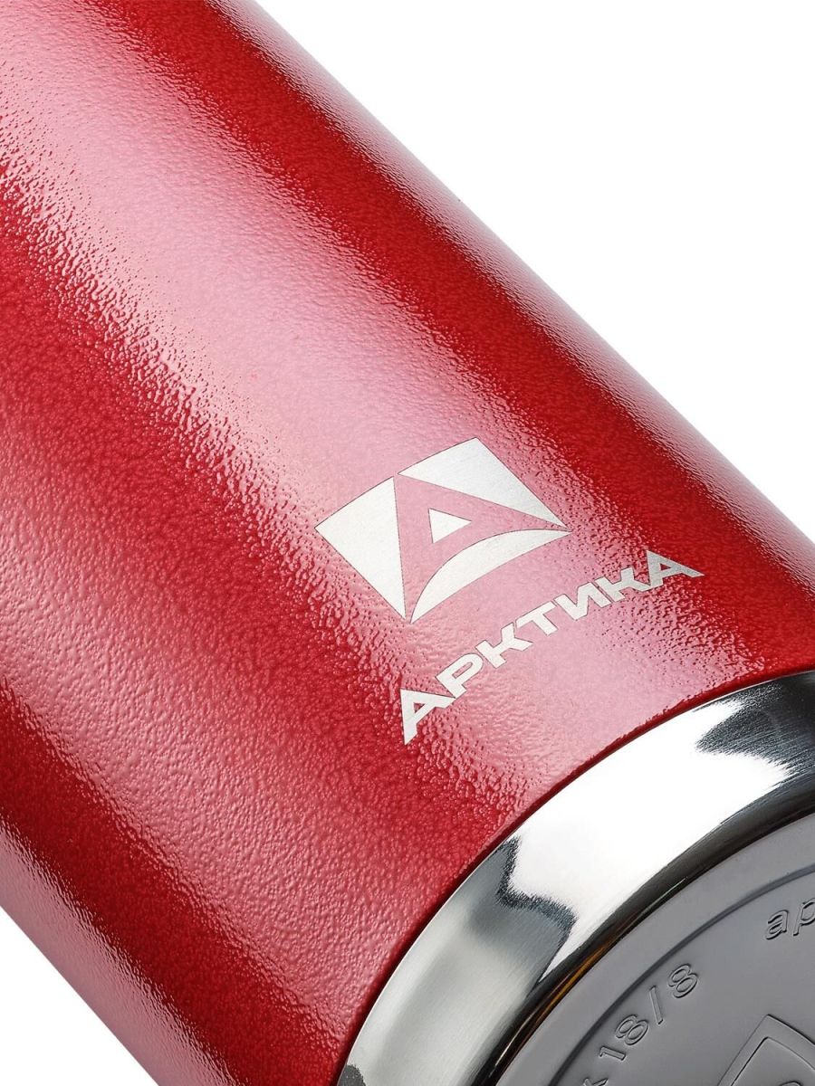 Термос с узким горлом и глухой пробкой, 2 накручивающиеся чашки в комплекте. Молотковая эмаль на корпусе дополнительно защищает термос от сколов и царапин. Объем 0,9 л.