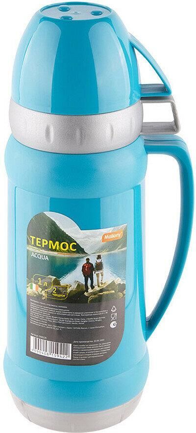Термос MALLONY Термос в пластиковом корпусе со стеклянной колбой ACQUA, 1,0 л (2 чашки) (008239)