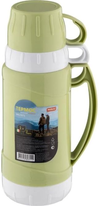 Термос Mallony предназначен для сохранения температуры Вашего напитка. Подходит как для горячих, так и для холодных напитков. Корпус изготовлен из пластмассы, колба из стекла. Герметичная конструкция препятствует проливанию и подтеканию жидкости. Благодаря легкому весу, компактный термос удобно брать с собой. В комплекте 2 чашки, что позволит поделиться напитком со спутником. Объем 1л. Размер: 12х30см.