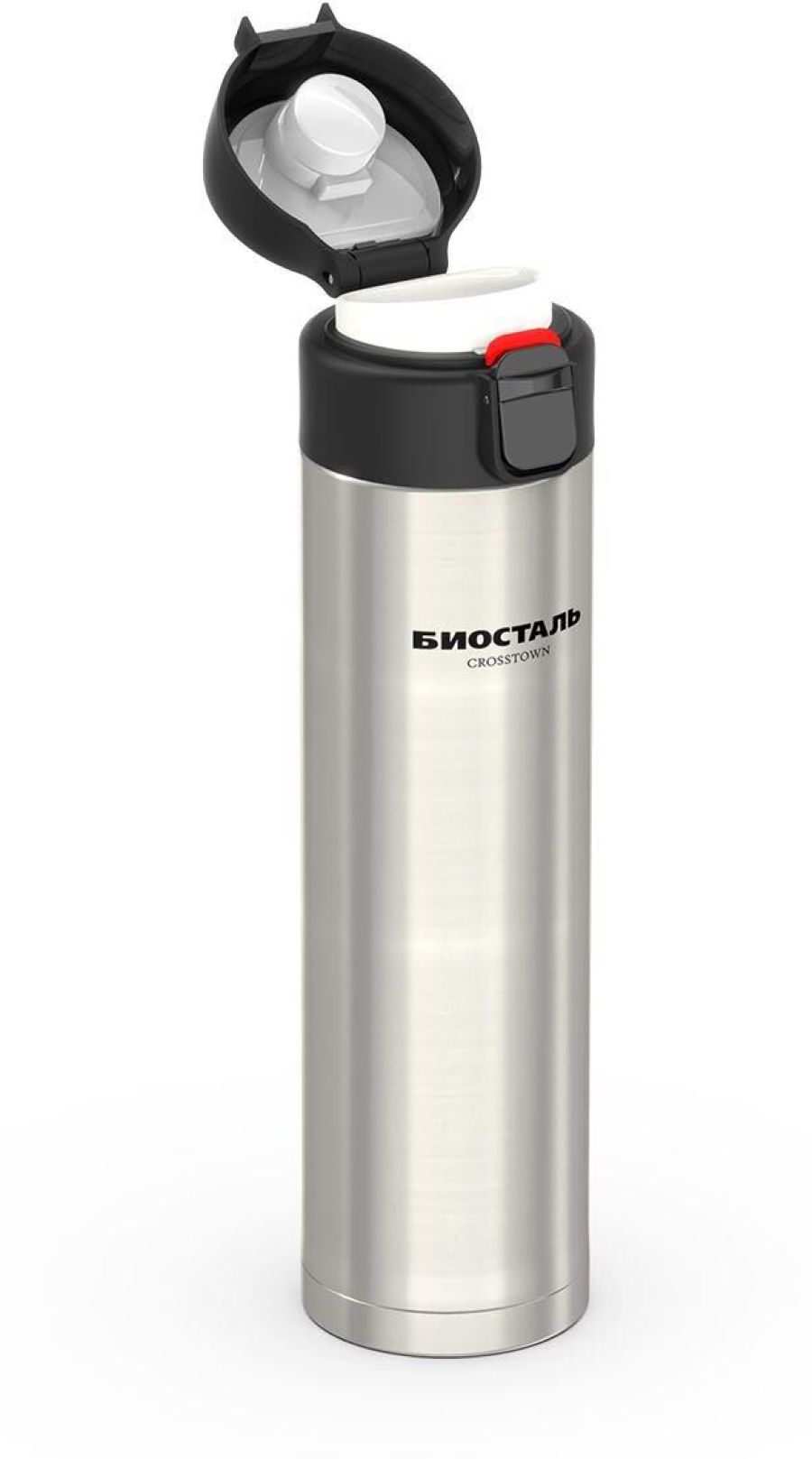 Термос-кружка NMU объёмом 420 мл. Кнопка-предохранитель на крышке блокирует замок для защиты от случайного открывания. Термос-кружка изготовлен из высококачественной нержавеющей стали 18/8 (AISI 304). Цвет - стальной.