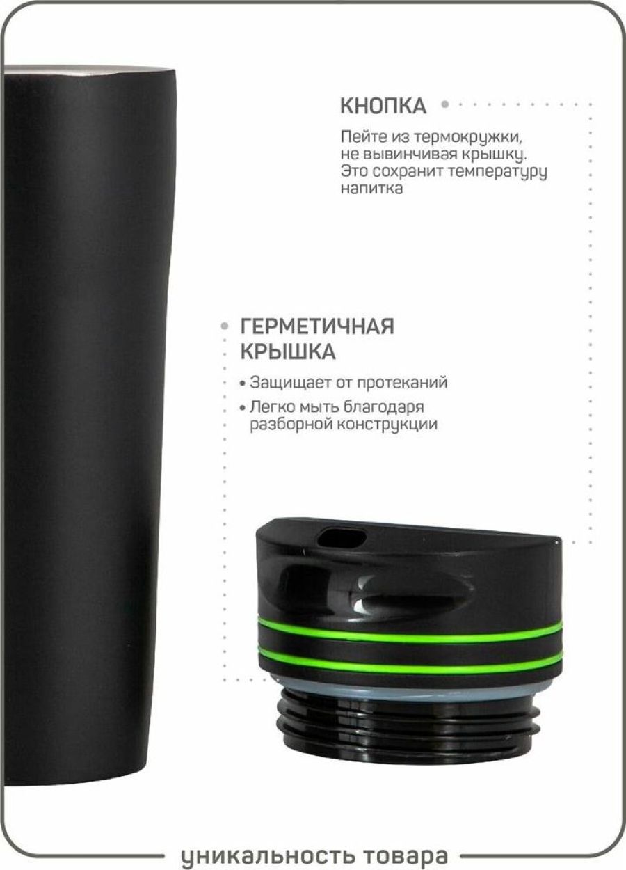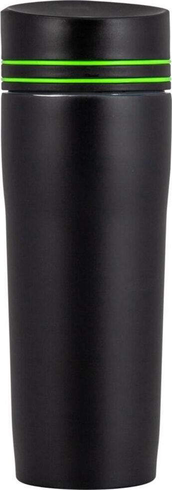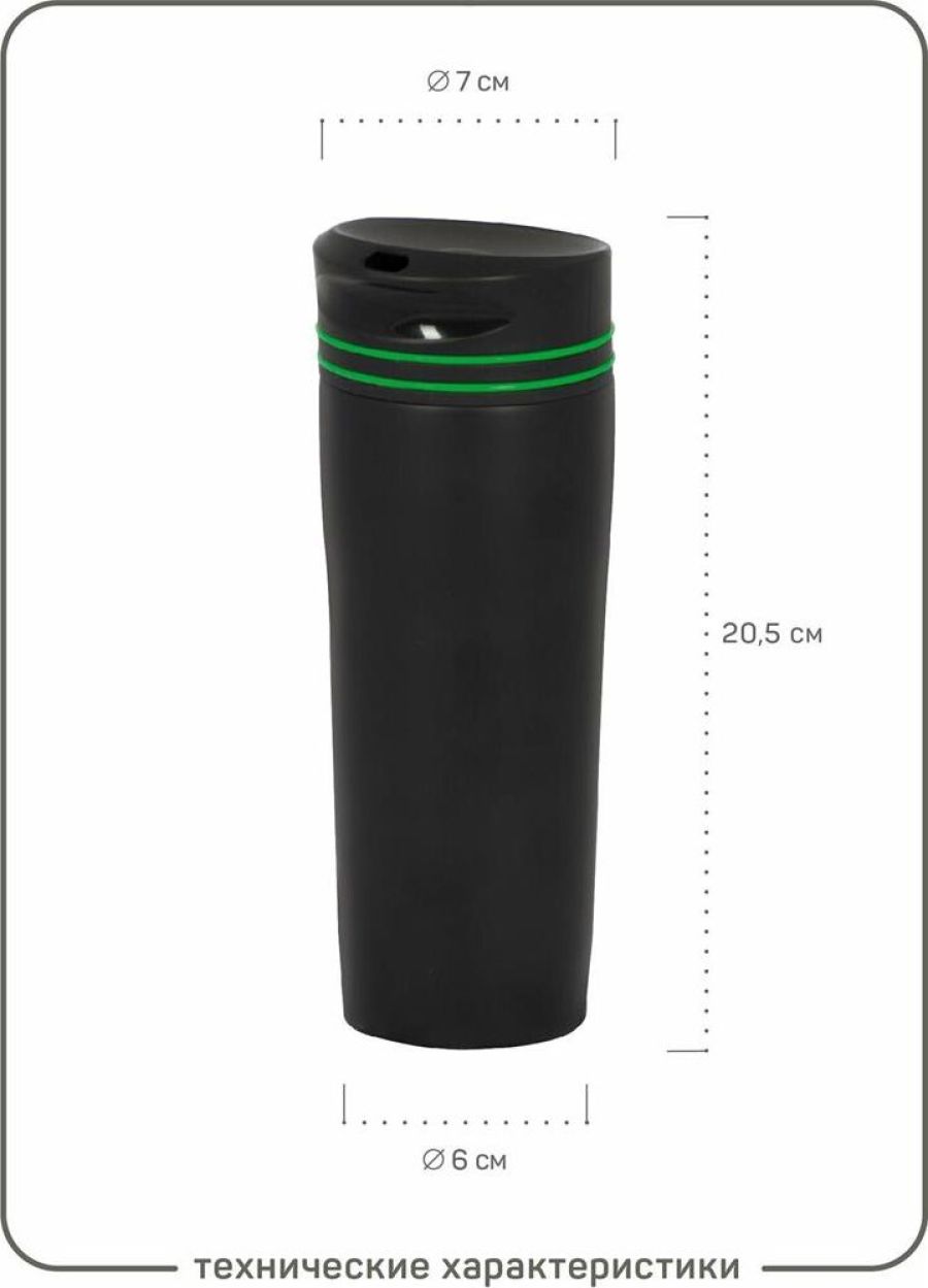 Термокружка из нержавеющей стали. Объем 380мл. Внутренняя колба из стали AISI 304 (аналог ГОСТ 08Х18Н10). Цвет: черный с зелеными полосками