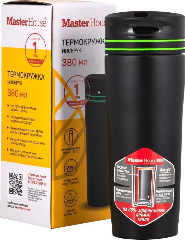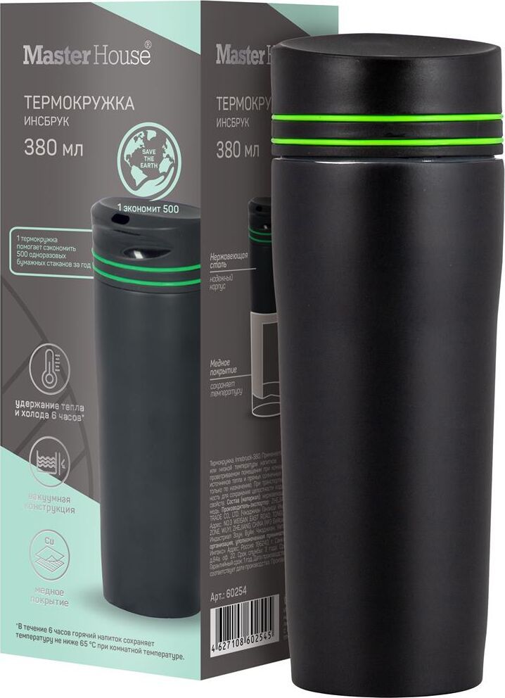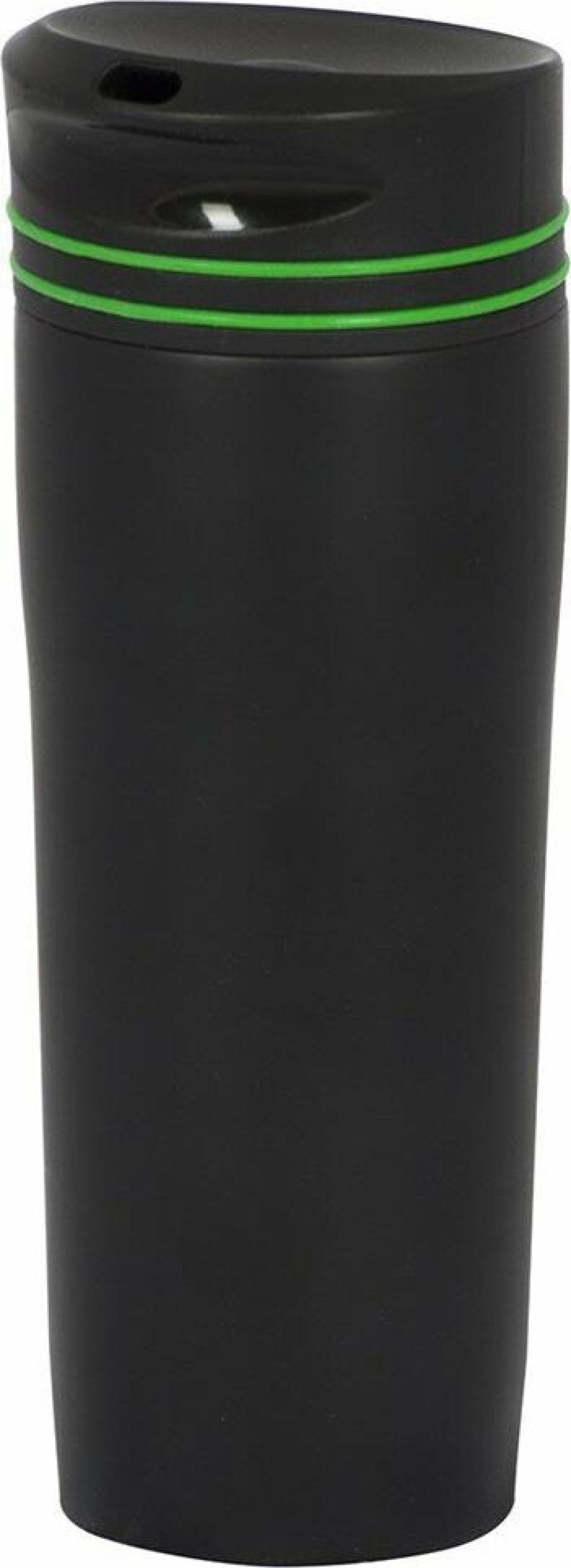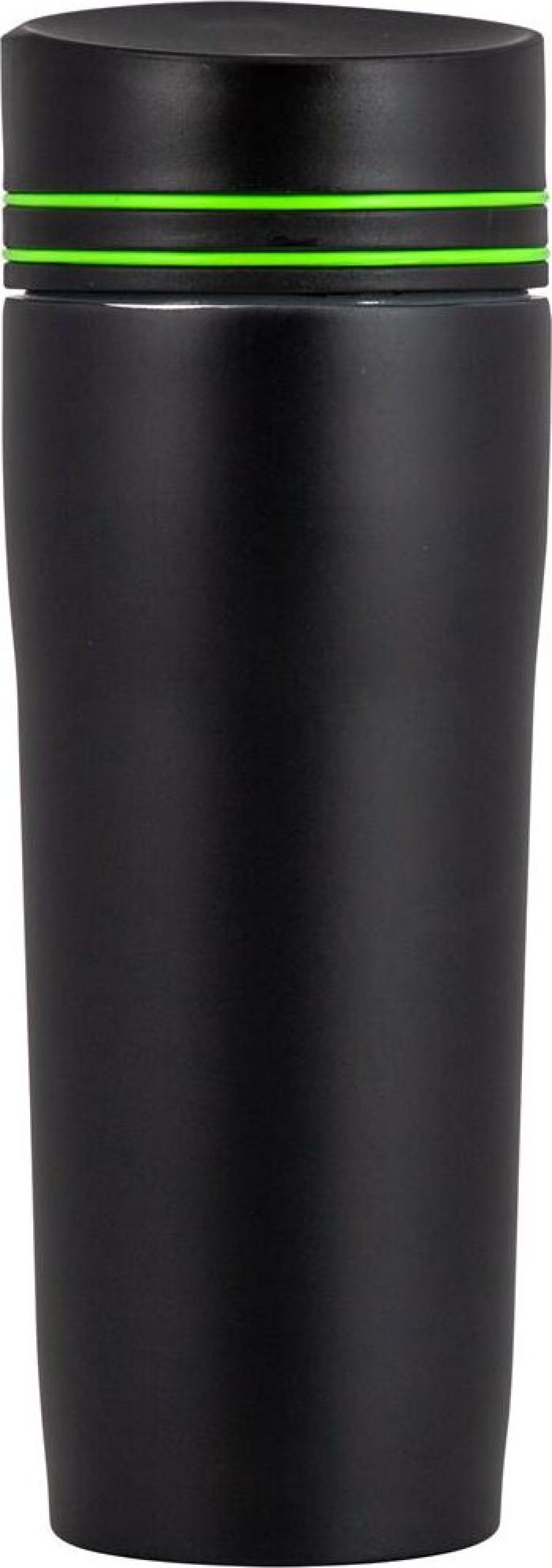 Термокружка из нержавеющей стали. Объем 380мл. Внутренняя колба из стали AISI 304 (аналог ГОСТ 08Х18Н10). Цвет: черный с зелеными полосками