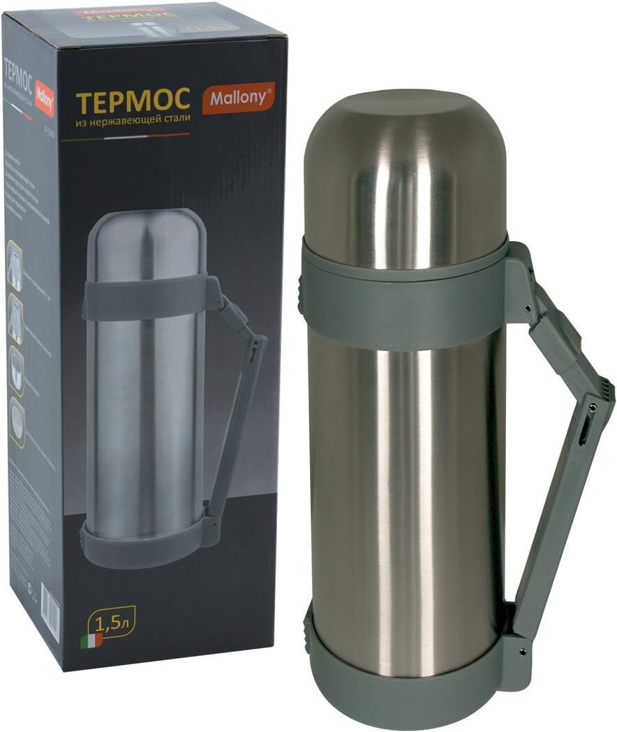 Объем: 1,50 л. Материал: нерж. сталь (201), пластмасса, резин. уплотнитель - Широкое горло (диам. 7см.) - Герметичный клапан (пробка) с кнопкой. Простым нажатием, не отвинчивая пробку, легко наливать напитки. - Выдвижная эргономичная ручка для удобства переноски - Крышка – кружка - Дополнительная кружка - Ремешок для переноски Термос предназначен для хранения горячих и холодных напитков, супов и других жидкостей. Упаковка: цветная картонная коробка