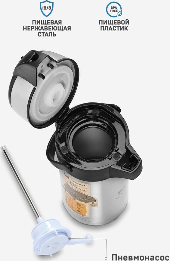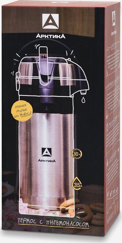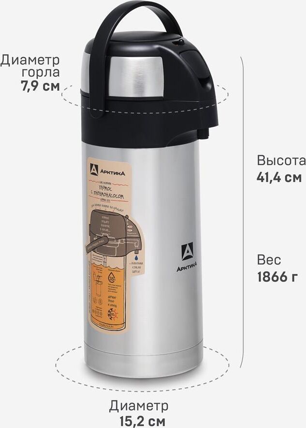 Термос с пневмонасосом, глухая пробка с термоизолятором, кнобка для налива,удобная ручка