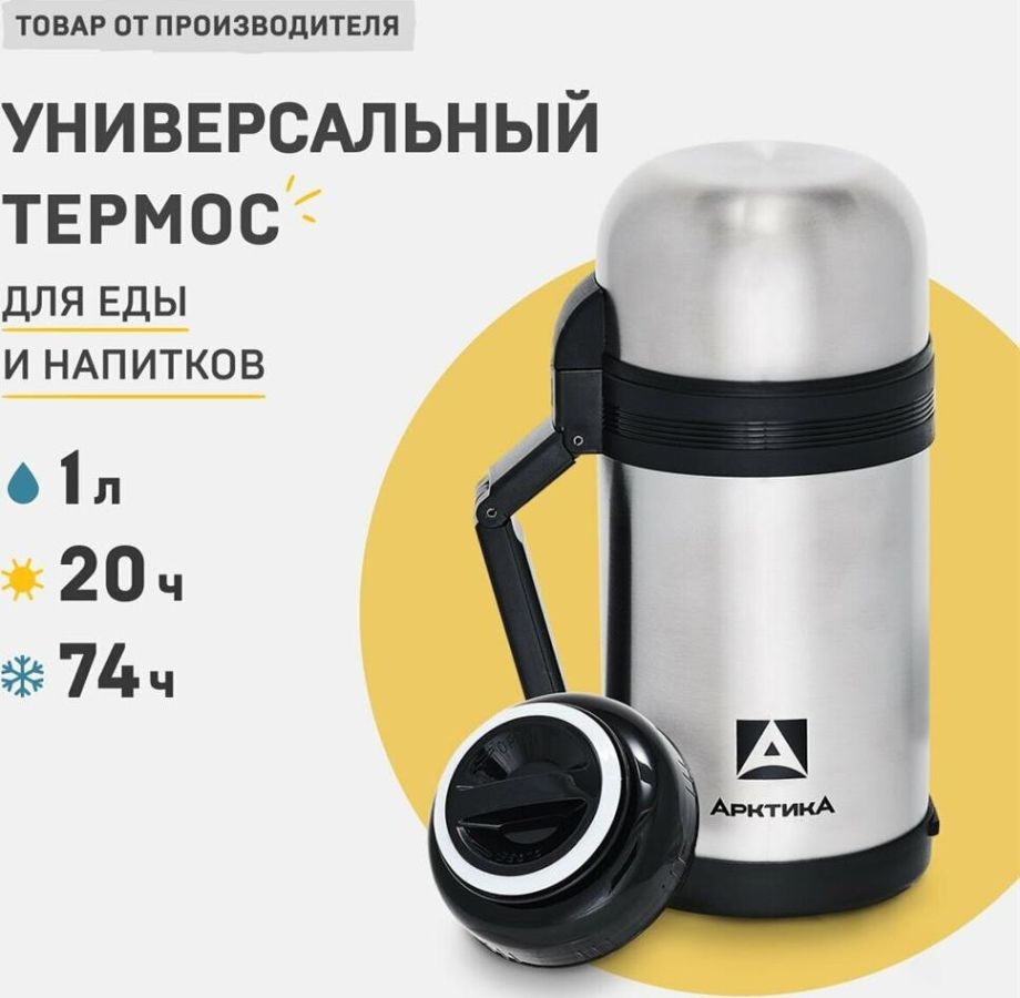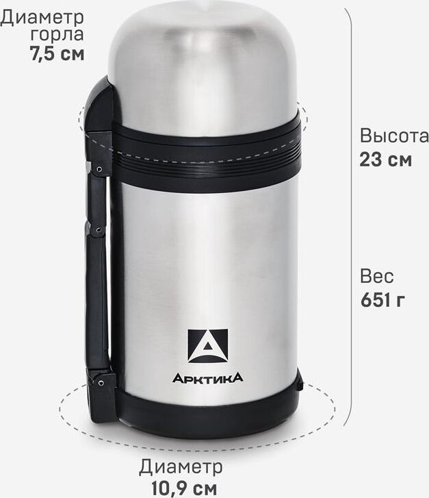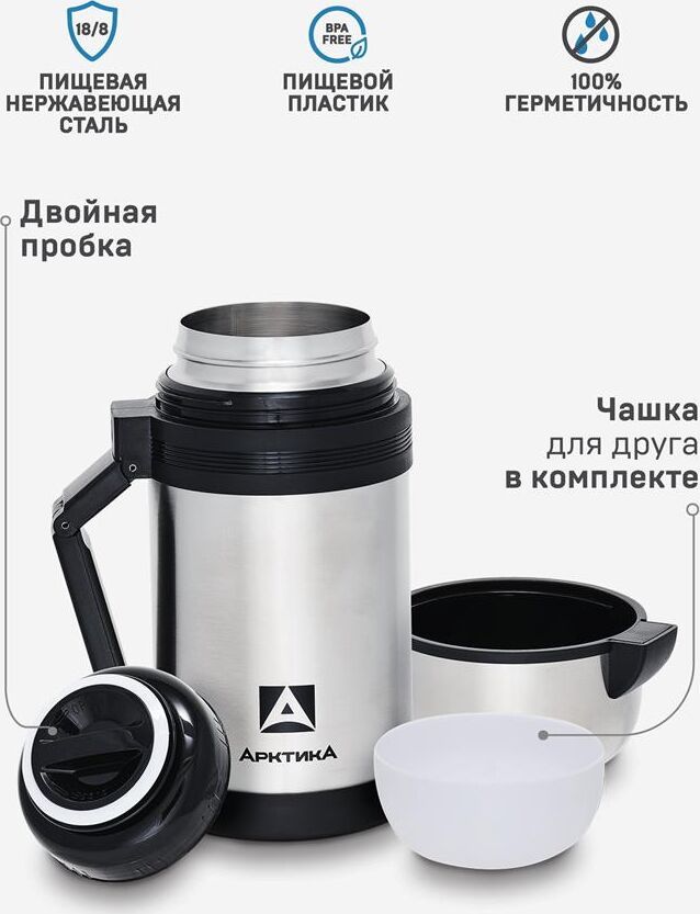 Термос универсальный с широким горлом, двойная пробка, складная ручка, дополнительная чаша, съемный ремешок