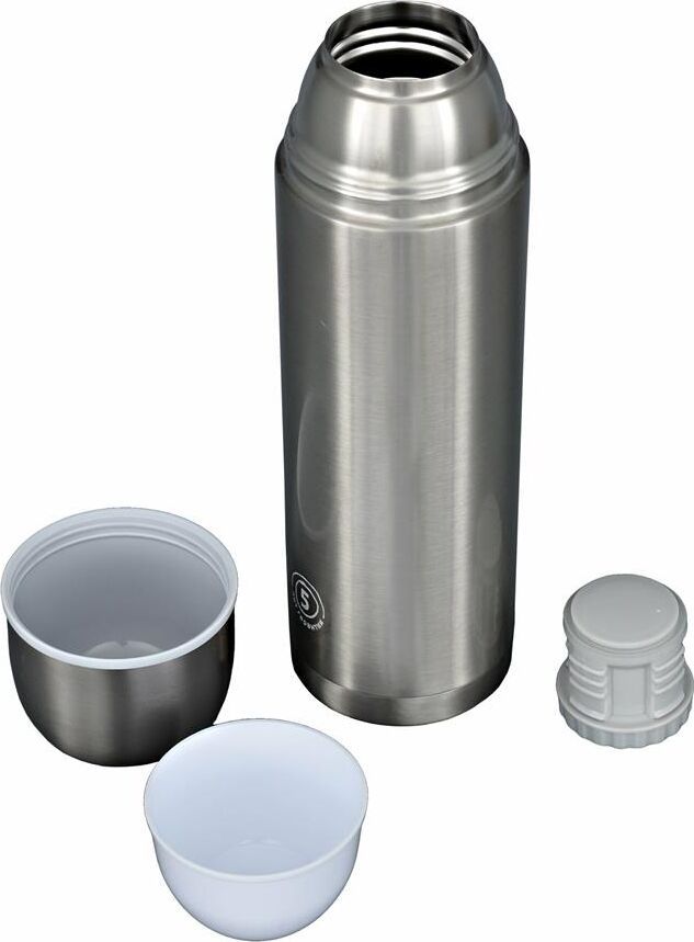 Термос компактного размера, с узким горлом, глухая пробка с термоизолятором, покрытие лак, дополнительная чаша