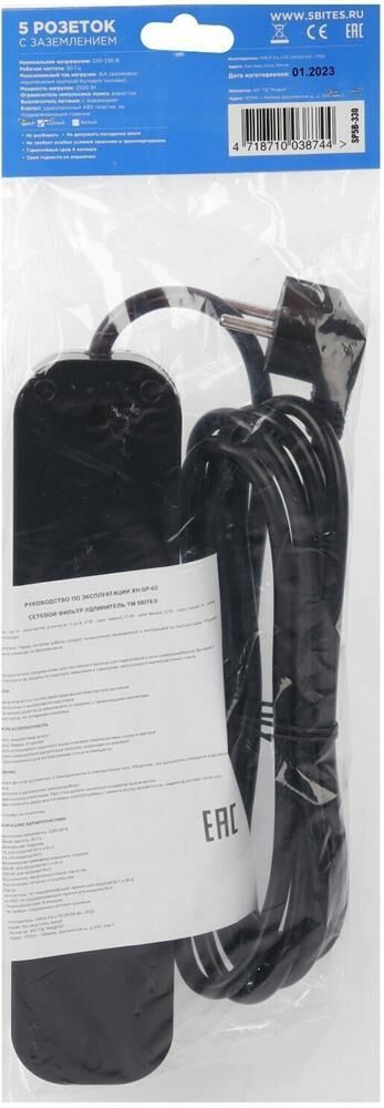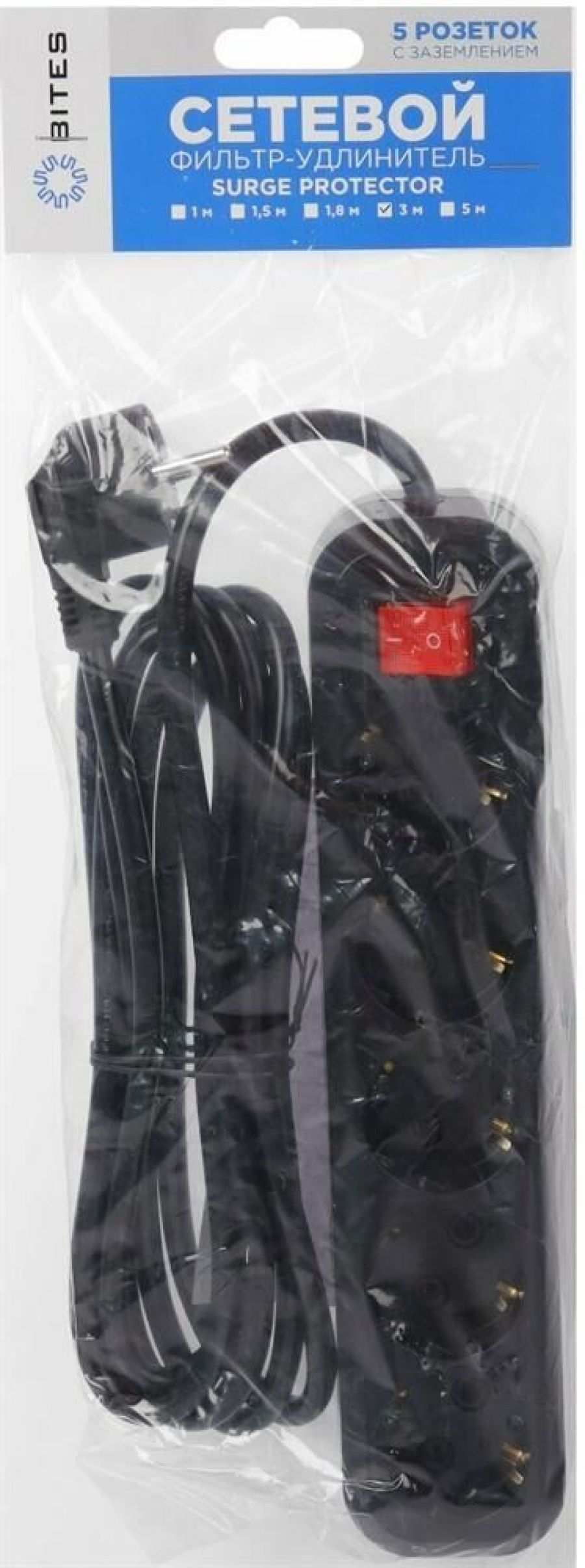[Сетевой фильтр] 5bites SP5B-330 Сетевой фильтр 5S / 3*1.5MM2 / 16A / ABS / 3M / BLACK