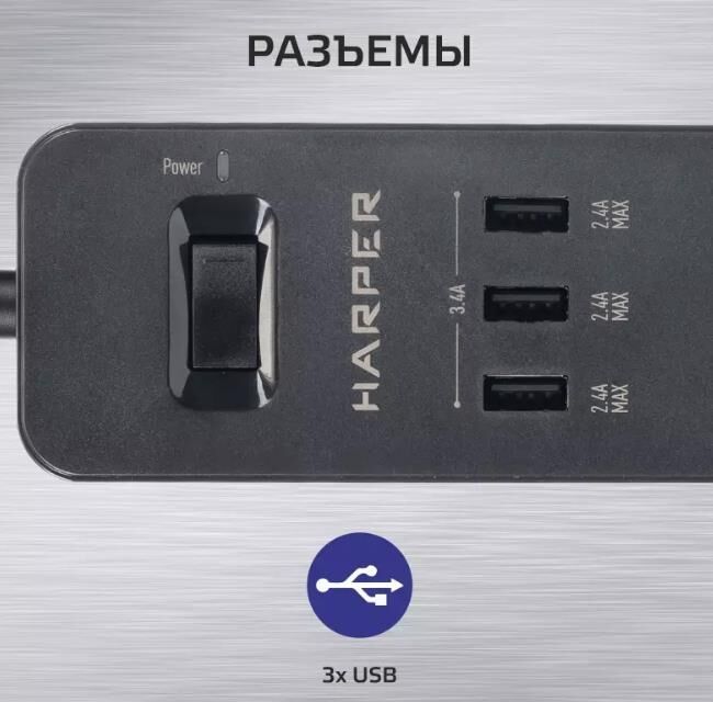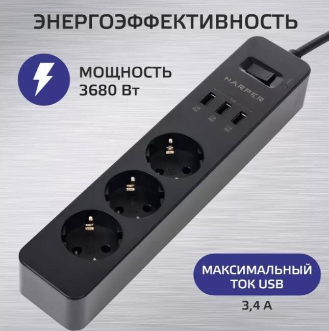 Тип оборудования: Сетевой фильтр. Длина кабеля : 1.5 м. Источник питания: AC 220-240 В 50 Гц. Максимальная мощность нагрузки: 3680 Вт. Максимальный ток нагрузки: 16 А. Количество розеток: 3. Количество USB портов: 3. Максимальная сила тока на 1 USB порт: 3.4 А. Защитные шторки: да. Заземление: да. Материал корпуса: Огнеупорный пластик. Комплектация: Сетевой фильтр, инструкция по эксплуатации. Цвет: белый. Размеры (ШхВхГ): 247х39х52 мм. Вес: 380 гр.