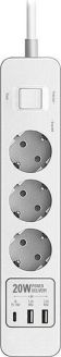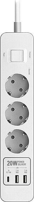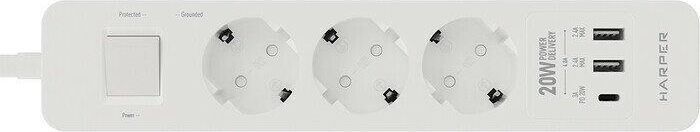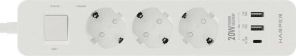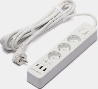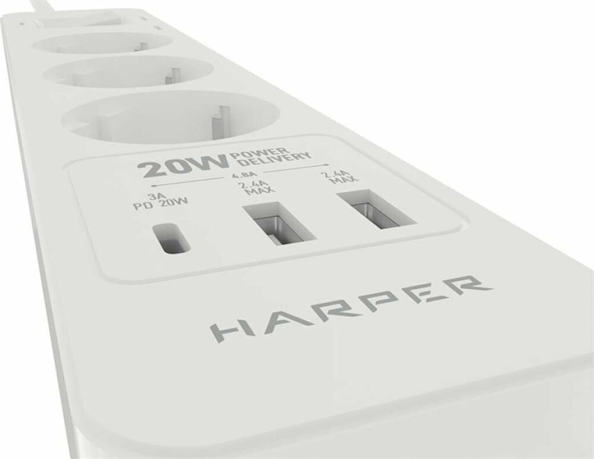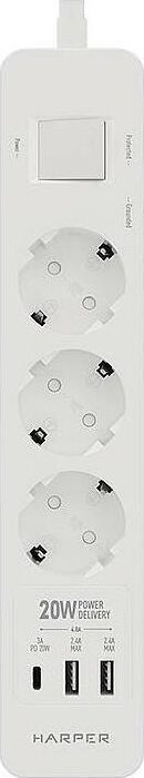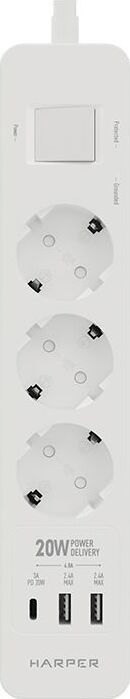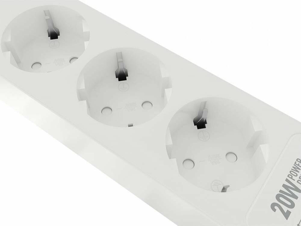 Удлинитель с 2xUSB+1xType-C (Power Delivery 20Вт) портами; Розетки 3шт; Длина кабеля 5.0 метров Максимальная мощность 4000W (16A); 2xUSB, 1xType-C (Максимальная суммарная сила тока: 4.8 А); Выключатель с защитой от перегрузок; Защитные шторки, Индикатор заземления, Индикатор работы; Индикатор защиты от перепада напряжения; Отверстия для крепления на стену; Стильный лаконичный дизайн; Высококачественный пластик; Питание AC 220-250V 50Hz. Вес: 600 гр.; Габариты 270х55х41 мм.