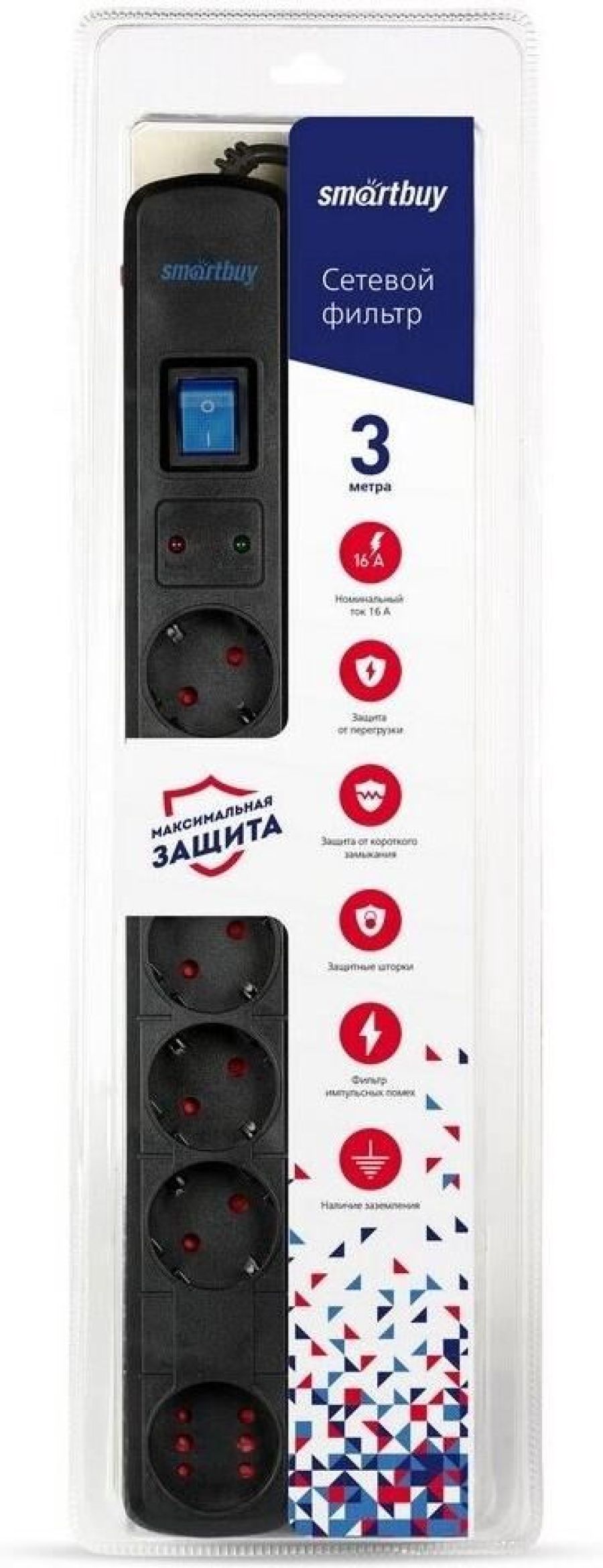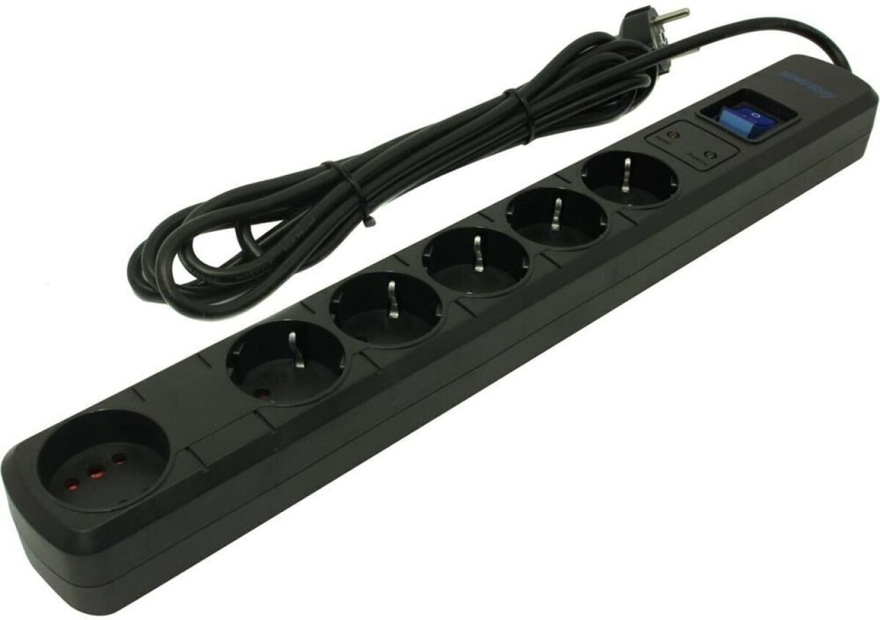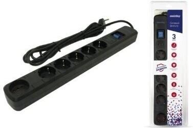 Сетевой фильтр Smartbuy- 16А- 3500 Вт- 6 гнезд- длина 3-0 м- черный (SBSP-30K-Pro)/30