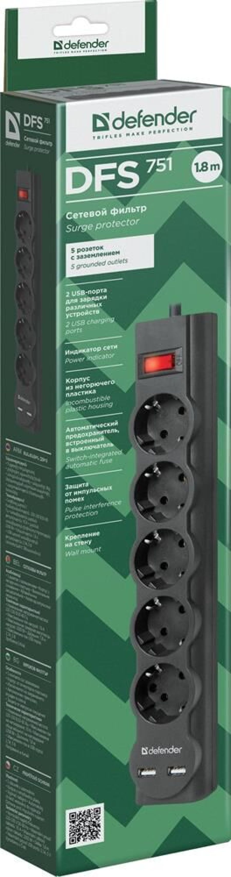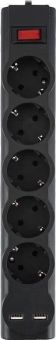 Количество USB-портов для зарядки : 2 шт., Максимальная суммарная мощность нагрузки: 2200 Вт, Максимальный ток нагрузки: 10 А, Максимальная рассеиваемая энергия: 220 Дж, Защищаемые цепи: Фаза-ноль,Защита от перегрузки и короткого замыкания: Автоматический несгораемый предохранитель, встроенный в выключатель, Розетки с заземлением: 5 шт.,Напряжение на USB-портах: 5 В, Максимальный ток USB-порта: 2.1 А, Токовая защита USB-портов, USB-порт для зарядки устройств, Длина: 1.8 м, Крепление на стену.