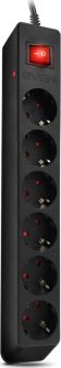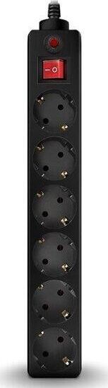 Макс. подавляемая энергия высоковольтных импульсов, Дж: 150, Номинальное напряжение, В: ~ 250, Рабочая частота, Гц: 50, Макс. допустимая нагрузка, Вт: 2200 MAX, Макс. ток нагрузки, А: 10,0, Входная вилка: СЕЕ 7/7, Выходные розетки: 6 х СЕЕ 7/4, Ток срабатывания термопредохранителя, А: > 10.